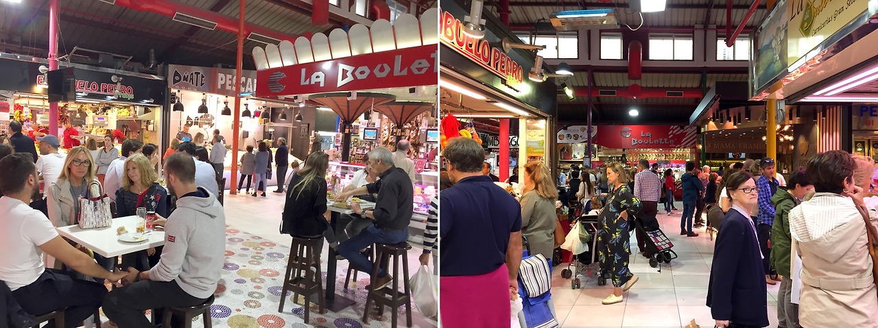 우와- 이게 다 뭐냐!! 나처럼 식탐 많은 어른들을 위한 마법 동화인가? 커다란 토마토 속에 들어와 있는 것처럼 빠알간 지붕 구조물의 색깔이 참 좋았다. 이곳의 이름은 ‘메르까도 데 라 빠스(Mercado de la Paz)’. Paz는 ‘평화’라는 뜻도 있으니 ‘평화시장’이구나. 빗속에 오갈 때 없는 미쇼 씨를 꿈과 환상, 평화의 멋진 신세계로 품어주시니 황송할 따름.