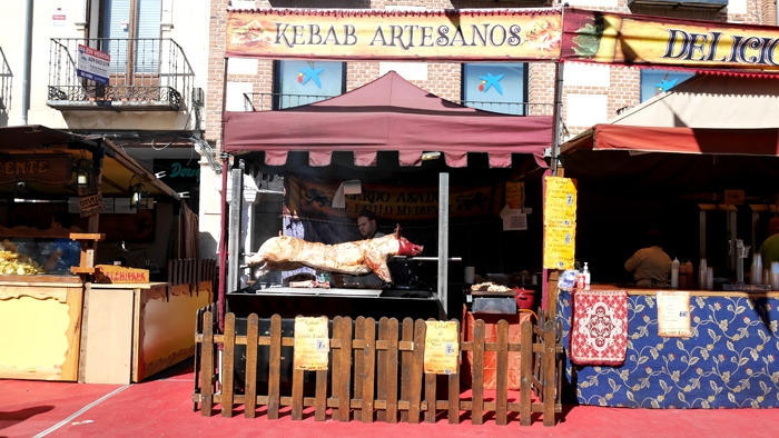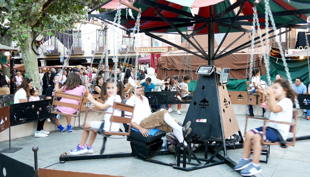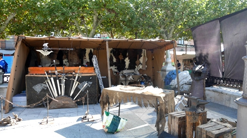 세르반테스 광장 근처로 진입하자 사람으로 가득하다. 이제 막 영업을 준비하는 푸드 코트도 보이고 신기한 물품을 진열하는 마차들도 보인다. 바비큐 냄새도 난다. 튀기는 냄새도 난다. '마요르 길(Calle Mayor, 까예 마요르)'이 축제의 핵심 골목이다. 관광 안내소로 가는 길에 이 길을 조금 걸어야 했다. 안내소 앞 세르반테스 광장은 이미 별세상!! 제련소가 있고, 아이들을 위한 무동력 놀이터가 있고, 내가 누워도 될 만큼 커다란 무쇠 가마솥에 빠에야, 바비큐, 소시지를 굽고 문어를 볶고 난리가 났다. 방문객을 제외한 모든 인력이 중세시대 전통의상을 입고 어서 여기 앉으라고 손짓한다. 마치 ‘왕좌의 게임’ 세트장에 뛰어든 기분이 들었다.