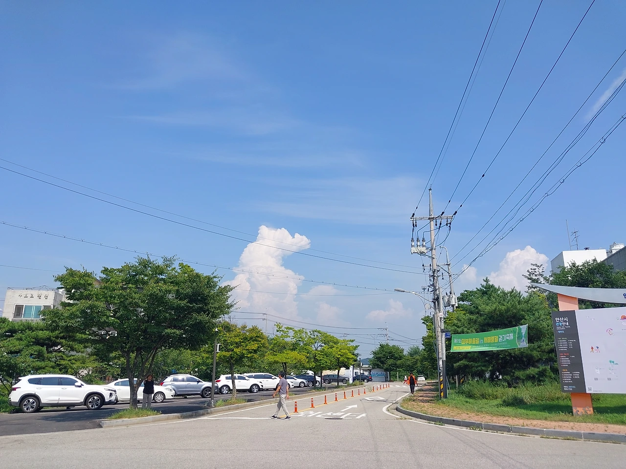 다행히도 양쪽으로 쌩쌩 달려오는 차들을 피해서 잽싸게 좌회전하여 적당한 식당을 찾아냈다. 식당은 단체 손님들이 북적였지만 한구석에 자리를 잡고 얼음이 갈린 시원한 콩국수 한 그릇을 먹었다. 맛은 괜찮았는데 자잘한 얼음이 진한 콩국물을 점점 흐리게 만드는 게 좀 불만스러웠다.