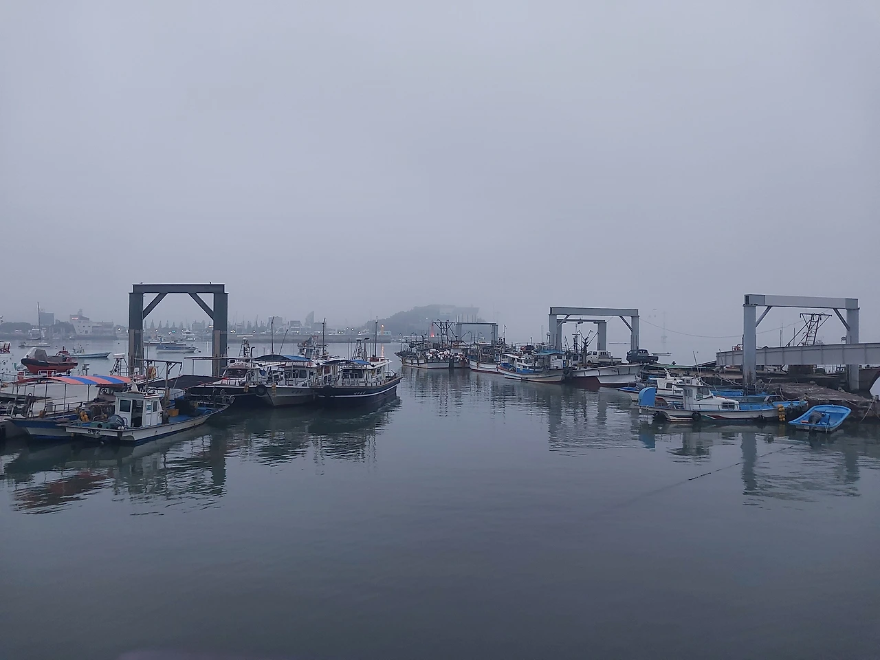 어둑어둑한 길을 10km 정도 달려서 주변의 항구에 도착했는데 날씨가 흐려서 해는 보이지 않았다.