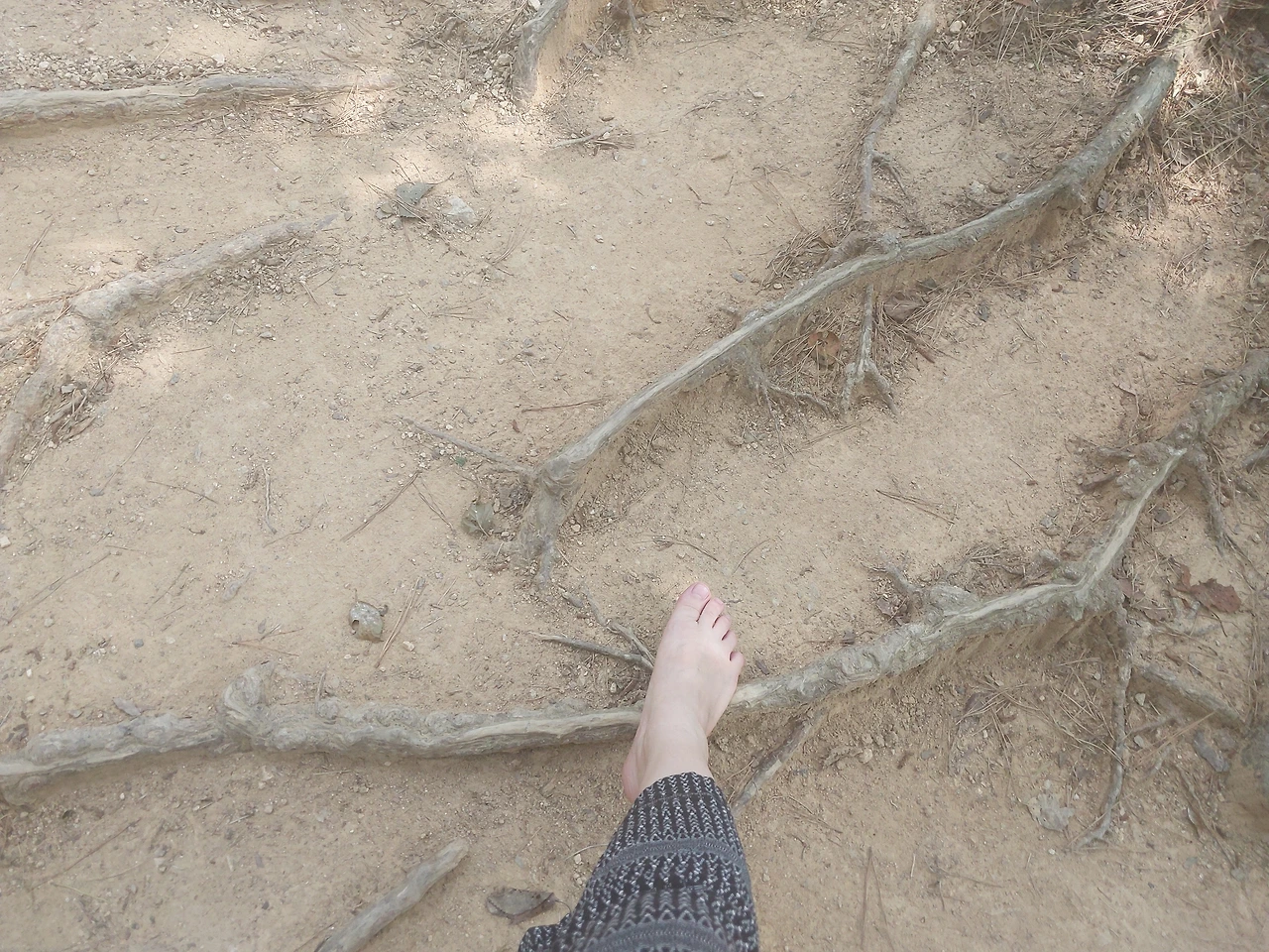 땅은 차가운 기운이 있고 작은 돌 때문에 따끔따끔한 느낌이 든다. 점점 대담하게 땅 위로 뻗은 나무뿌리도 밟아보고 여기저기 지경을 넓혀본다. 하지만 가끔씩 마주치는 등산객들을 보니 민망해졌다. 좀 피로감이 심할 뿐 정신은 아주 멀쩡합니다. 발 하나 벗었을 뿐인데 왜 이리 헐벗은 것 같지?