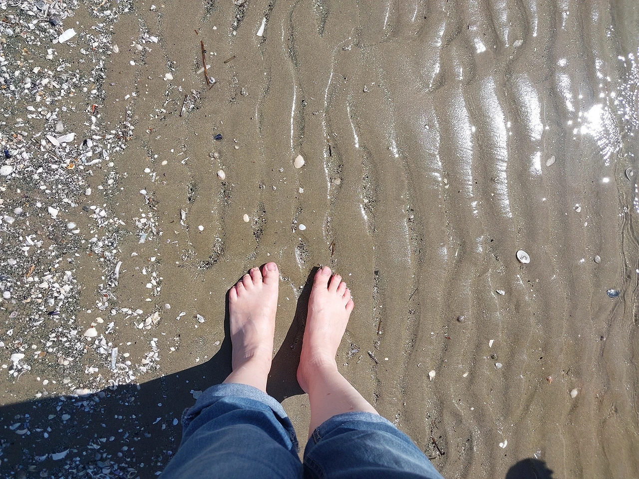 모래가 부드럽고 따뜻하고 파도 자국난 모래사장을 걸으니 좋아요.