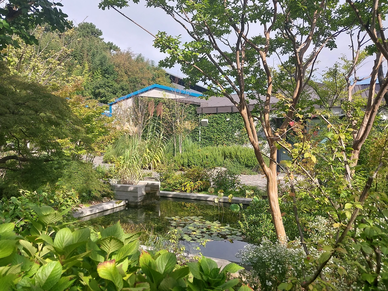 옛 공장을 개조하여 전시장, 카페, 정원 등등이 있어요.