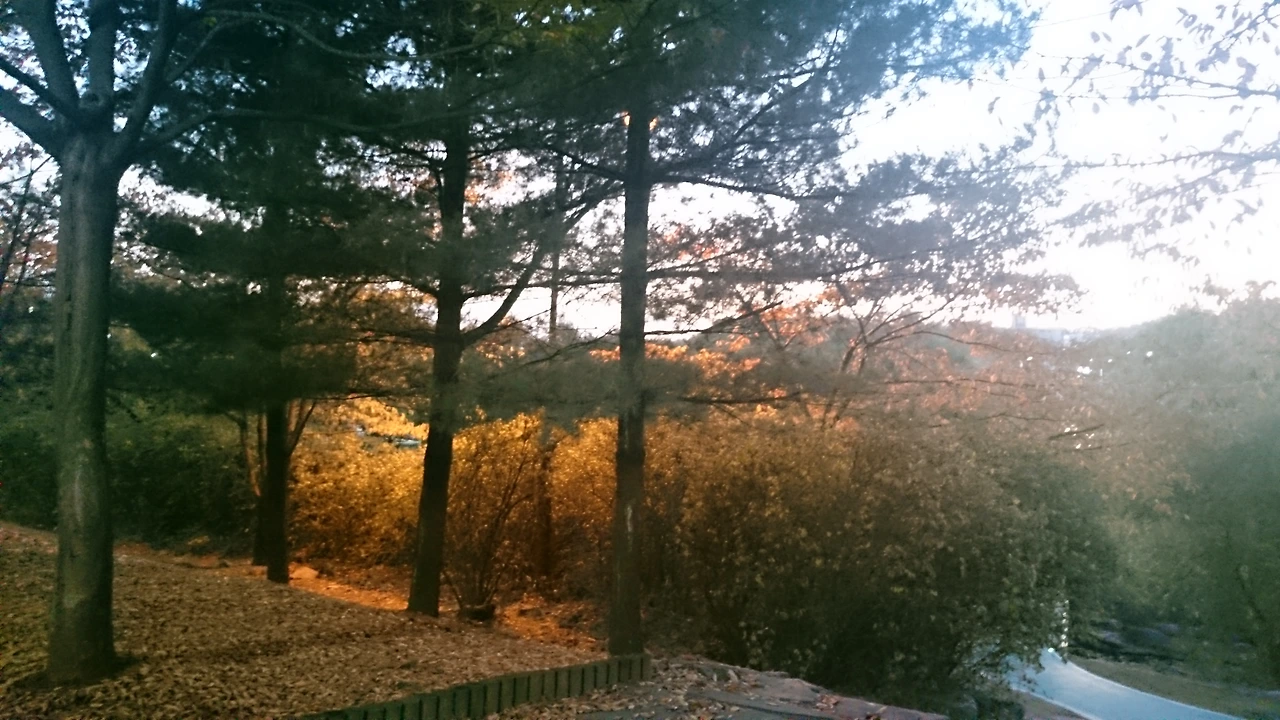 가로등 불빛에 비친 낙엽들이 무언가 신비로운 빛을 띄고 있네요.