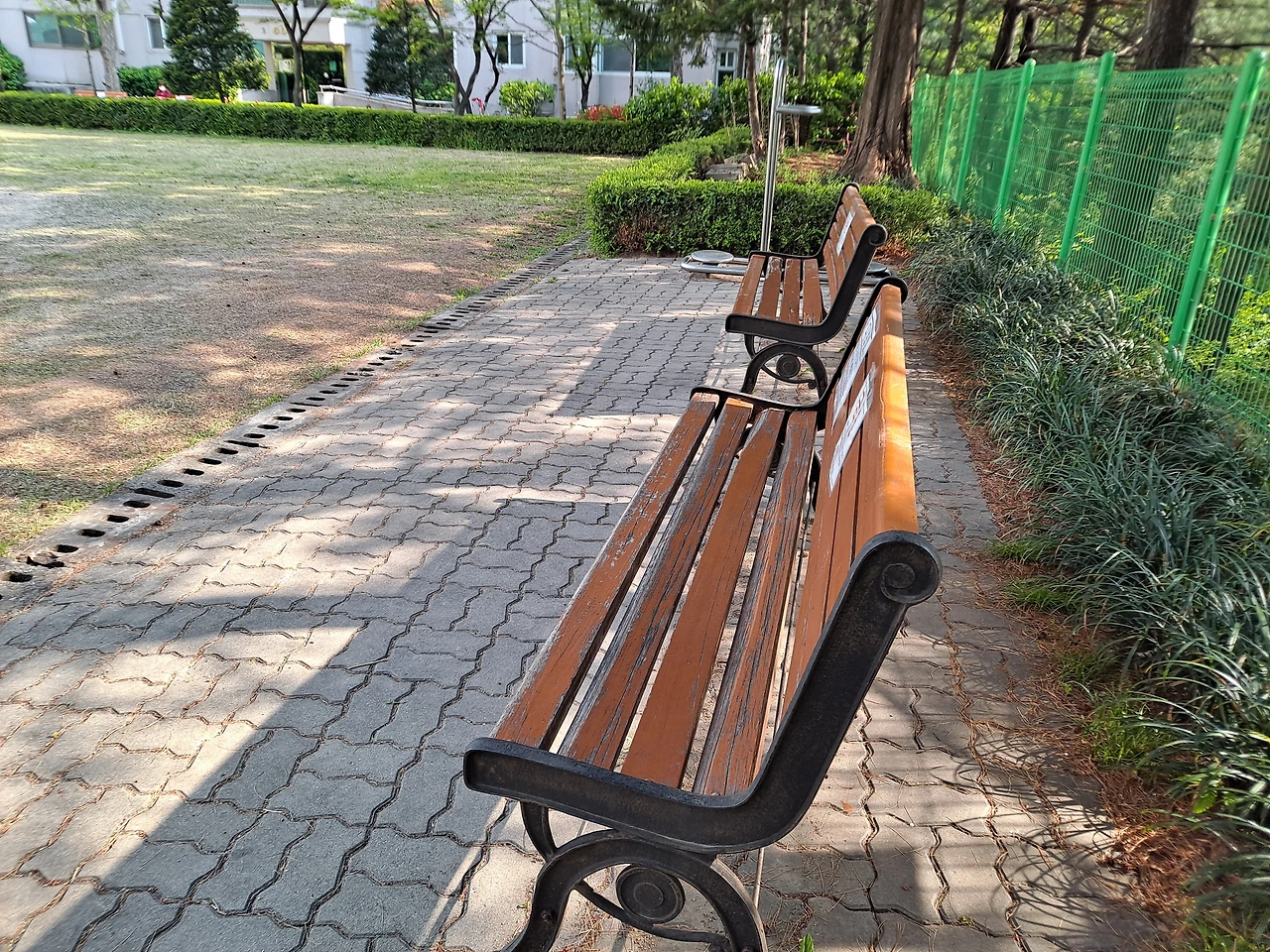 꽃이 가득한 아파트를 조금 걷다가 배드민턴장 앞 벤치에 앉았다. 팔십은 넘어 보이는 할머니와 그녀의 딸인지 간병인인지 모를 분이 팔짱을 끼고 잔디밭 한 면을 걷고 있다. 아마 연로하신 할머니와 무료함이 내려앉은 오후 시간에 잠시 운동 삼아 산책을 나온 것 같다. 두 사람은 햇빛을 가리는 분홍빛 모자에 지팡이를 짚고 마스크에 하얀 면 장갑을 똑같이 끼고 한눈에 쏙 들어오는 네모난 잔디밭 주변을 천천히 맴돈다.
