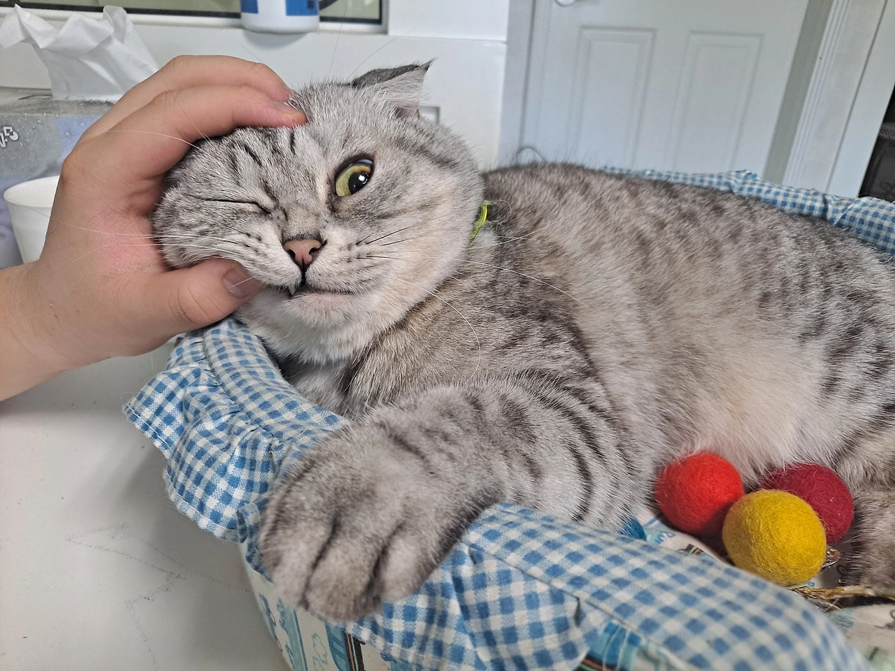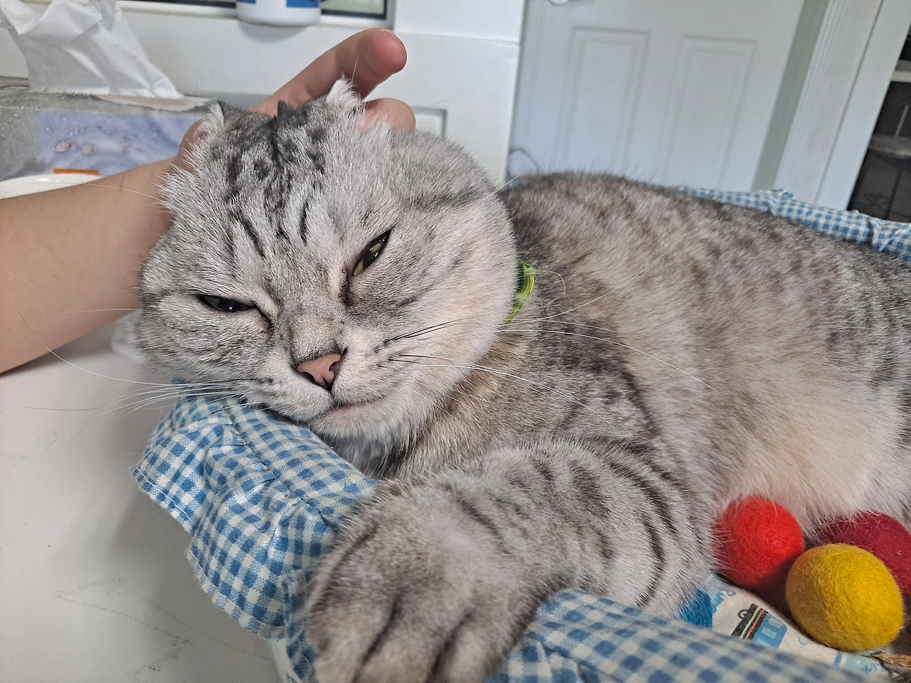 몸의 다른 곳은 다 그루밍이 되나 혀가 안 닿는 머리와 목덜미는 인간이 마사지를 해드리면 만족스러워 하신다.