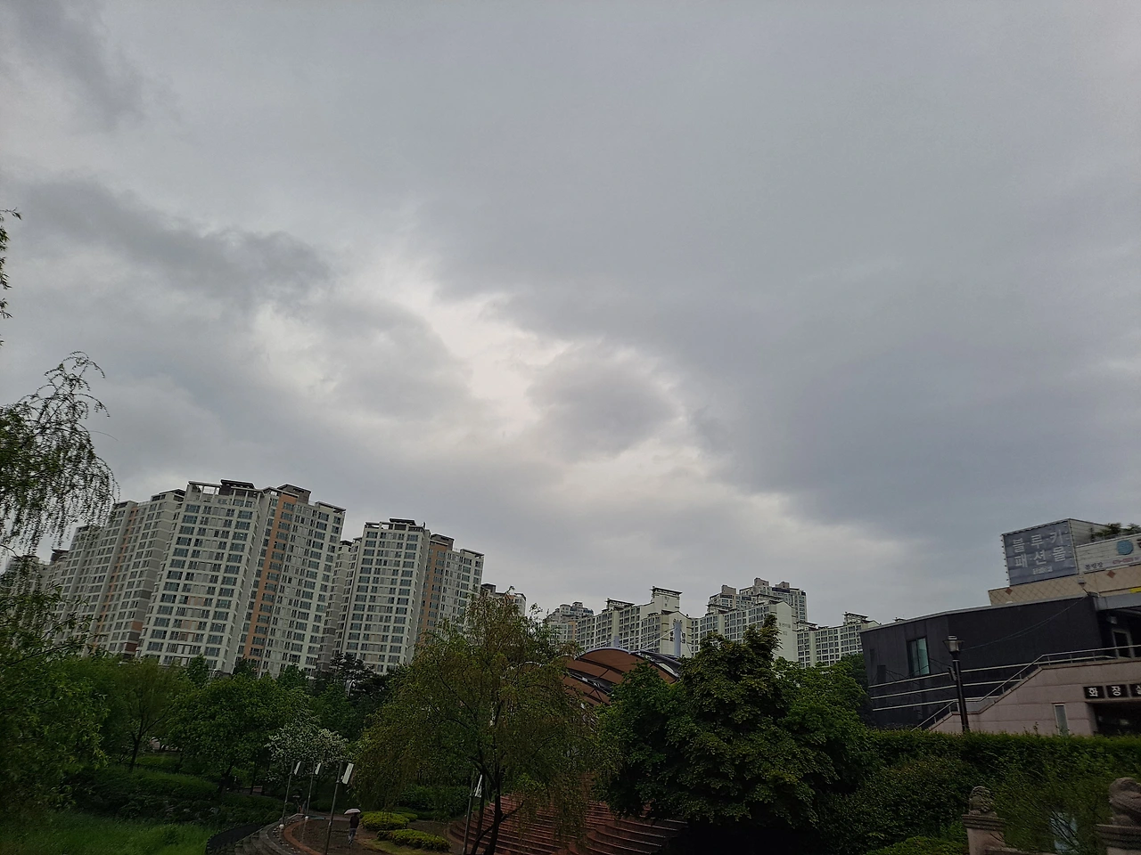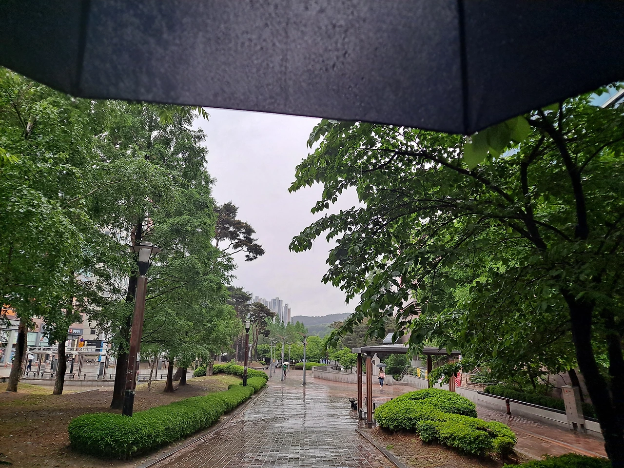 언제나처럼 열 두시가 넘어서야 어슬렁거리며 산책을 나왔다. 그래도 계속 집에 있고 싶지는 않다. 비오는 날이라도 산책은 할 수 있으므로. 비는 아주 약하게 들릴 듯 말듯한 소리로 내리고 있다. 비가 오는 풍경을 찍어보려 했으나 쉽지는 않았다. 우산을 쓰고 핸드폰도 비에 젖지 않게 하면서 한 손으로 화면을 눌러야 하니까. 손가락이 짧아서 슬픈 짐승이여. 짐승까지는 아닌데. (ㅋ)