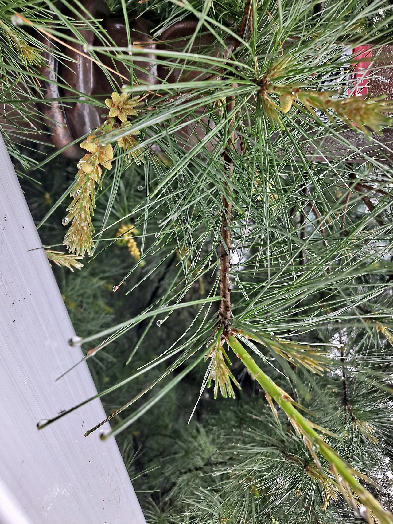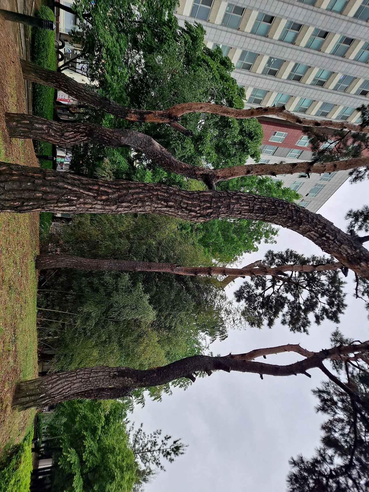 비를 맞으며 서 있는 소나무