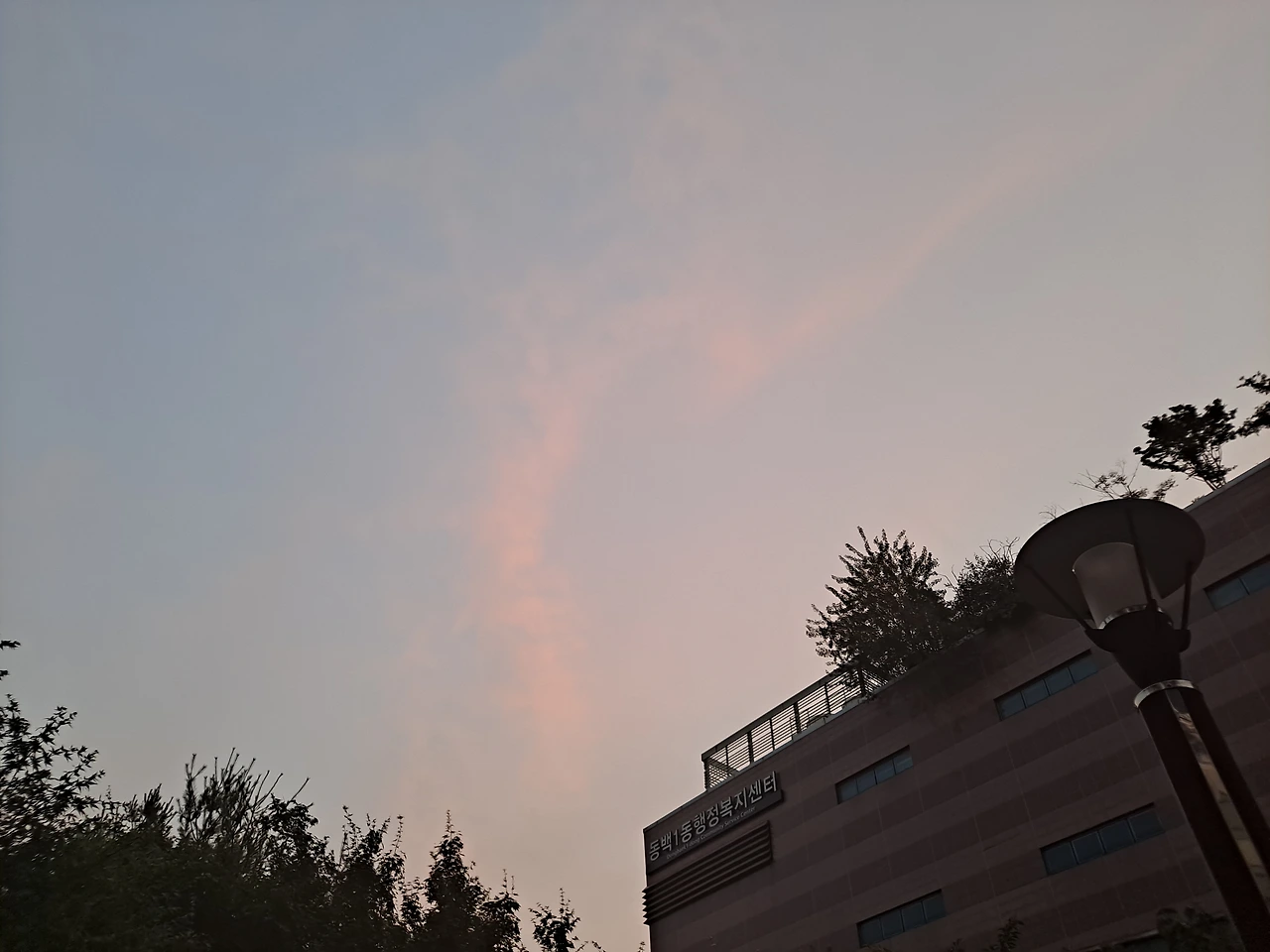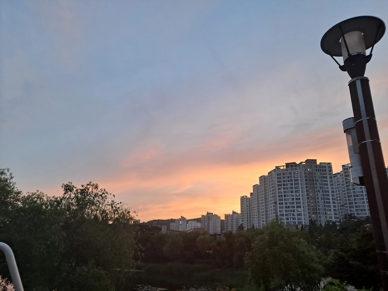 저녁을 잘 챙겨먹고 산책을 나왔다. 먹어야 산다는 정신으로 평소에도 아주 잘 먹지만 살짝 상하려는 버섯을 잔뜩 넣은 된장국과 토마토, 오이, 양상추를 넣고 연어를 올린 샐러드에 밥을 먹었다. 밥을 먹을 때도 건강에 좋은 음식들을 챙겨먹으며 나 자신을 토닥거려주어야 한다. '주차 때문에 고생했으니 열심히 먹고 힘내렴. 나 자신아.'