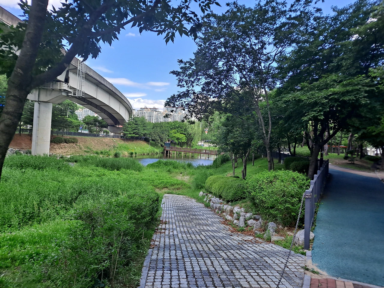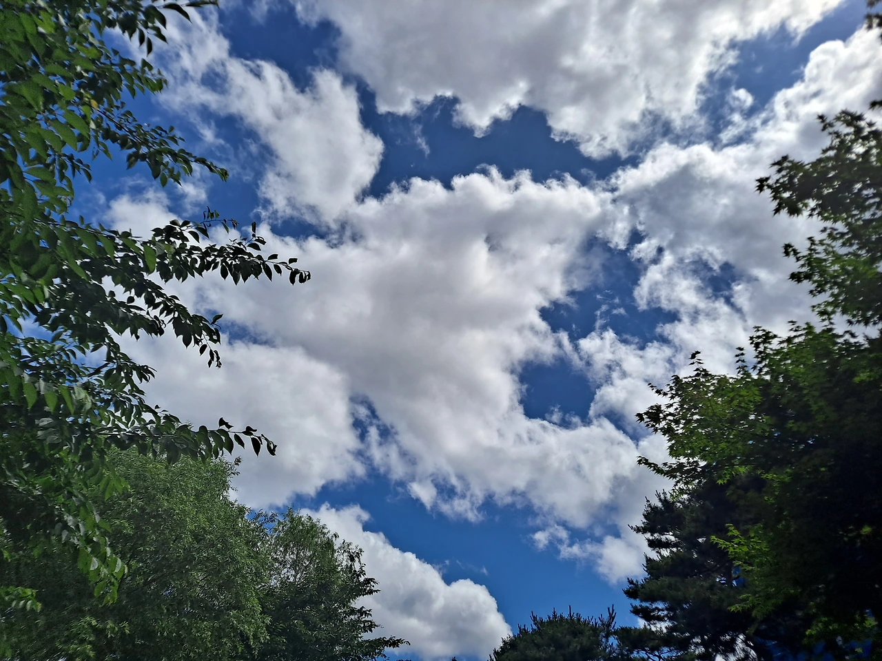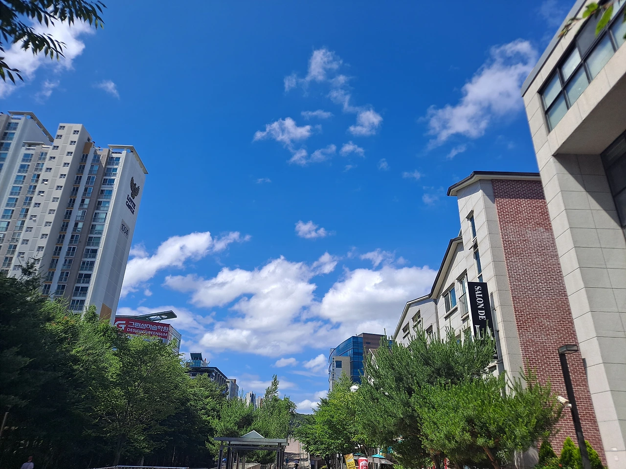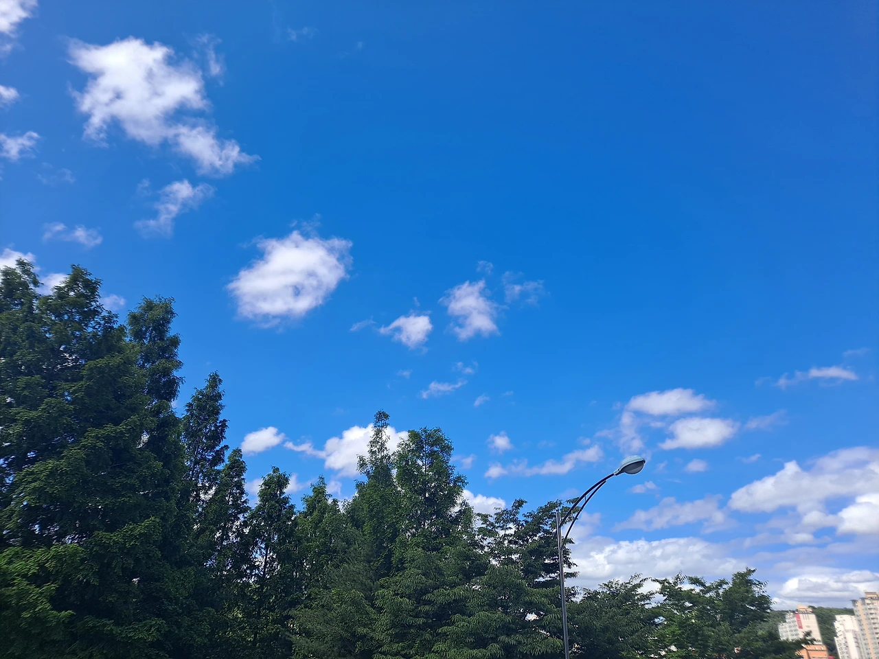 오전 산책을 나섰다. 어제 조금 내린 비로 온 세상이 새로 태어난 듯 해맑게 씻긴 것 같았다. 파란 하늘에 부피감이 큰 흰 구름들이 뭉텅이로 풍성하게 떠 있다. 잔디 위에 돗자리를 펴고 누워서 푸른 하늘에 흰구름만 몇 시간 쳐다보아도 마음에 힐링이 될 것 같은 날. 구름과 바람이 만들어 내는 시시각각 변화하는 오묘한 작품을 아무 시름없이 감상하고 싶다.