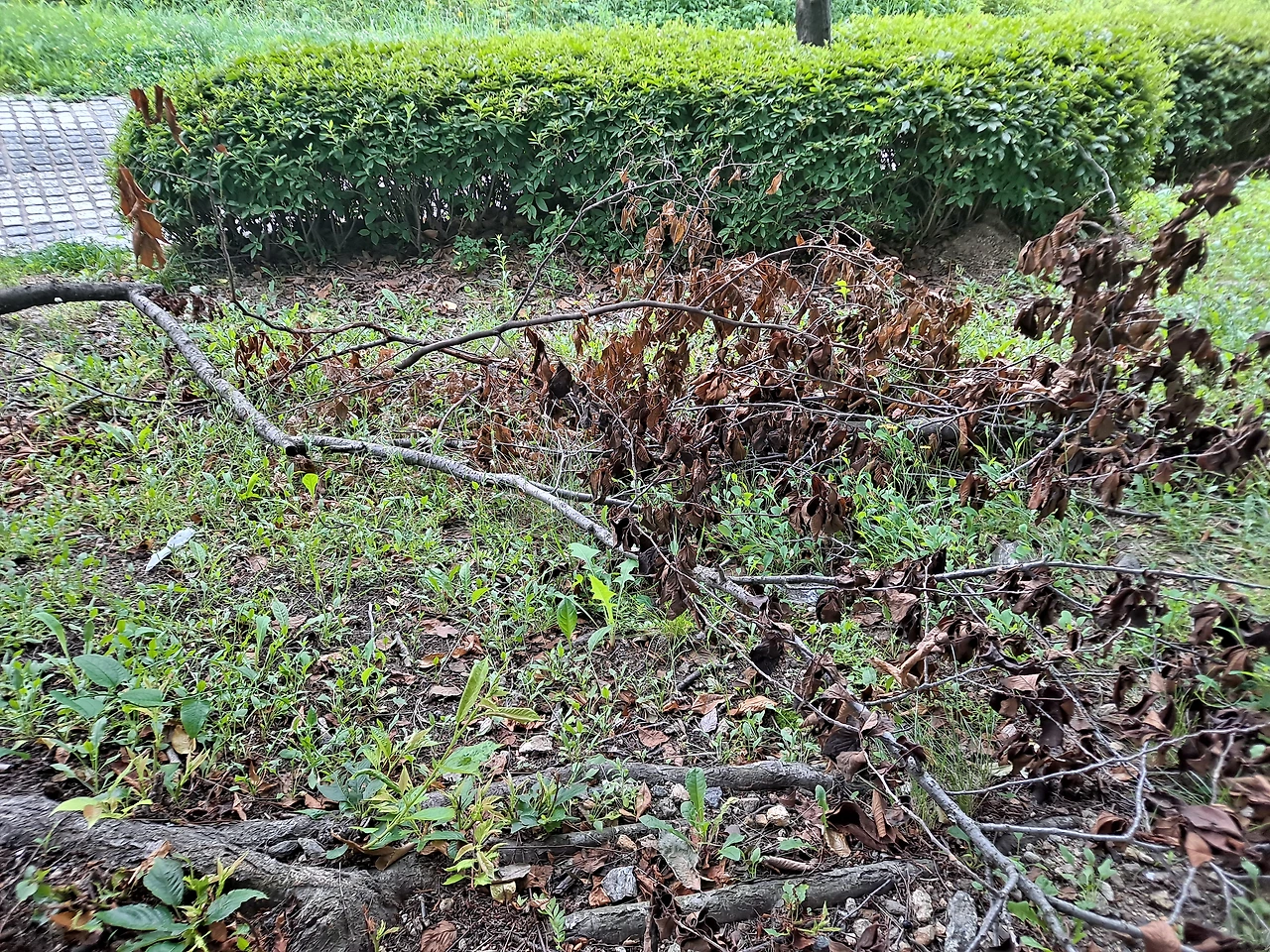 자기 명을 다하고 땅에 쓰려져 짙은 갈색 빛으로 썩어가는 나뭇잎을 매달고 있는 나무가 있었다. 저 나무도 한 때는 당당하게 서서 푸르른 꿈을 꾸고 있었으리라. 죽어가는 나무 옆에는 선명한 푸른색으로 생명력을 뿜으며 돋아나는 식물들이 자라고 있다. 삶과 죽음이 함께 머무르는 장소. 선명하게 대비가 되기는 하나 전혀 어색하지 않은 풍경이다. 쓰러진 나무는 서서히 형체를 잃어가고 흙 속으로 스며들 것이고 그 양분은 땅 속의 뿌리를 통해 다시 푸른 잎으로 옮겨갈 것이니. 자연은 끊임없이 태어나고 죽으며 순환하고 있다. 인간 세상도 이와 다르지 않으리.