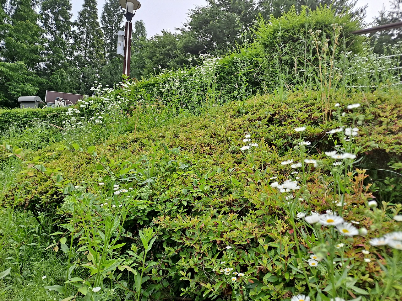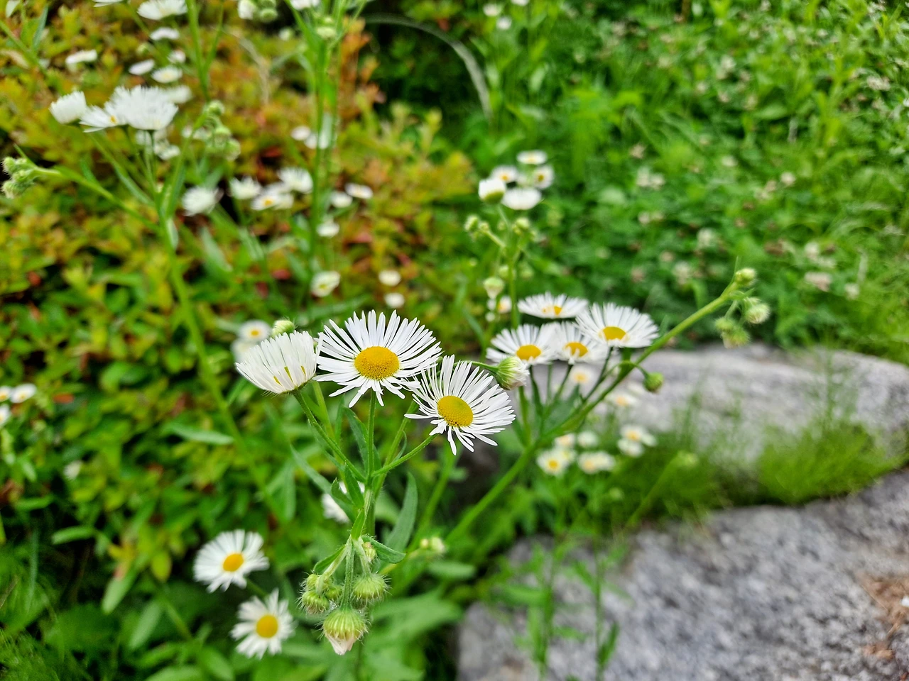 개망초꽃이 흐드러지게 피었다. 여기저기. 작은 하얀 꽃잎에 가운데 부분은 노란색이어서 흔히 계란꽃이라고도 불린다. 마치 프라이팬에 계란을 막 깨트려 놓은 계란 프라이를 닮지 않았나?