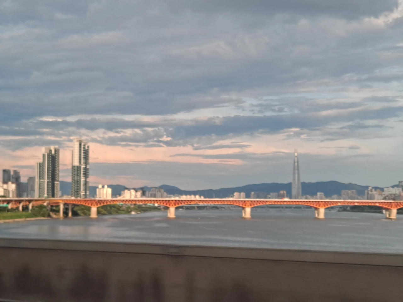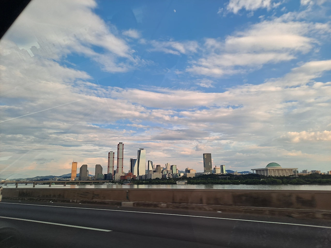 서울로 진입하며 마치 시골 영감님이 처음 서울 구경을 나오신 듯 한강과 다리와 쭉쭉 뻗은 반쩍거리는 건물들에 또 감탄을 연발하였다. 금빛으로 빛나는 63빌딩과 오렌지빛 한강 다리와 드넓은 푸른 한강의 완벽한 조화. 캬~