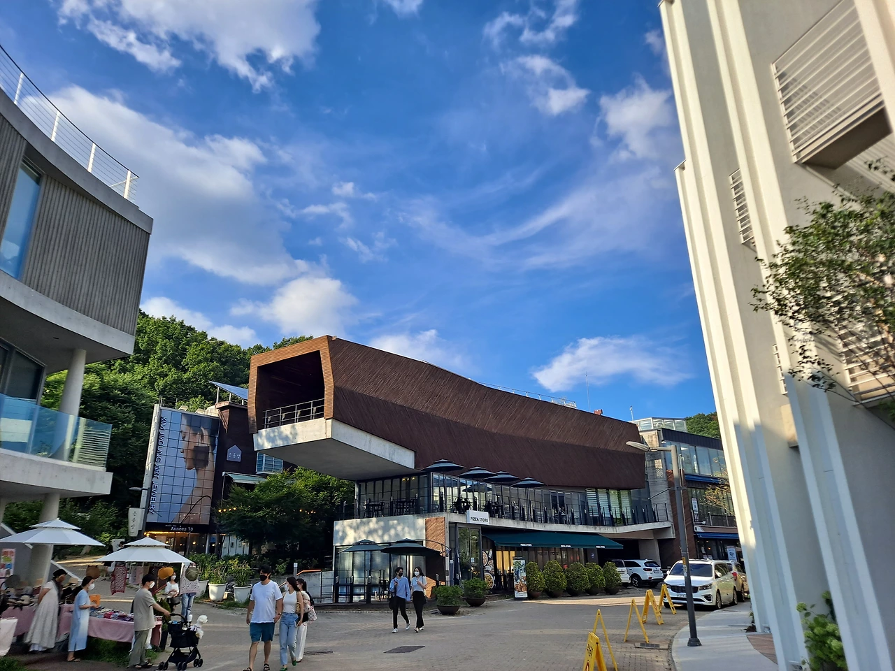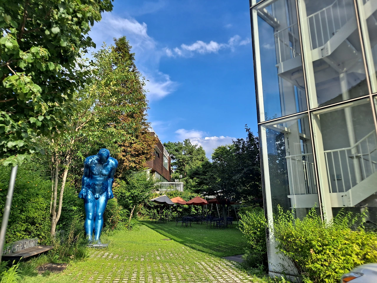 동생과 다시 헤이리 마을로 달렸다. 날씨가 무더워도 하얀 구름이 3D처럼 입체적으로 펼쳐진 하늘을 보니 가만히 집에 앉아서 보내기는 아까운 날이었다. 자유로를 또 무한히 자유롭게 달려보자. 이 드라이브 길은 마치 바다 갯벌같은 강이 한편에 시원하게 펼쳐진 길이라 차를 몰고 질주하기에는 안성맞춤이다.