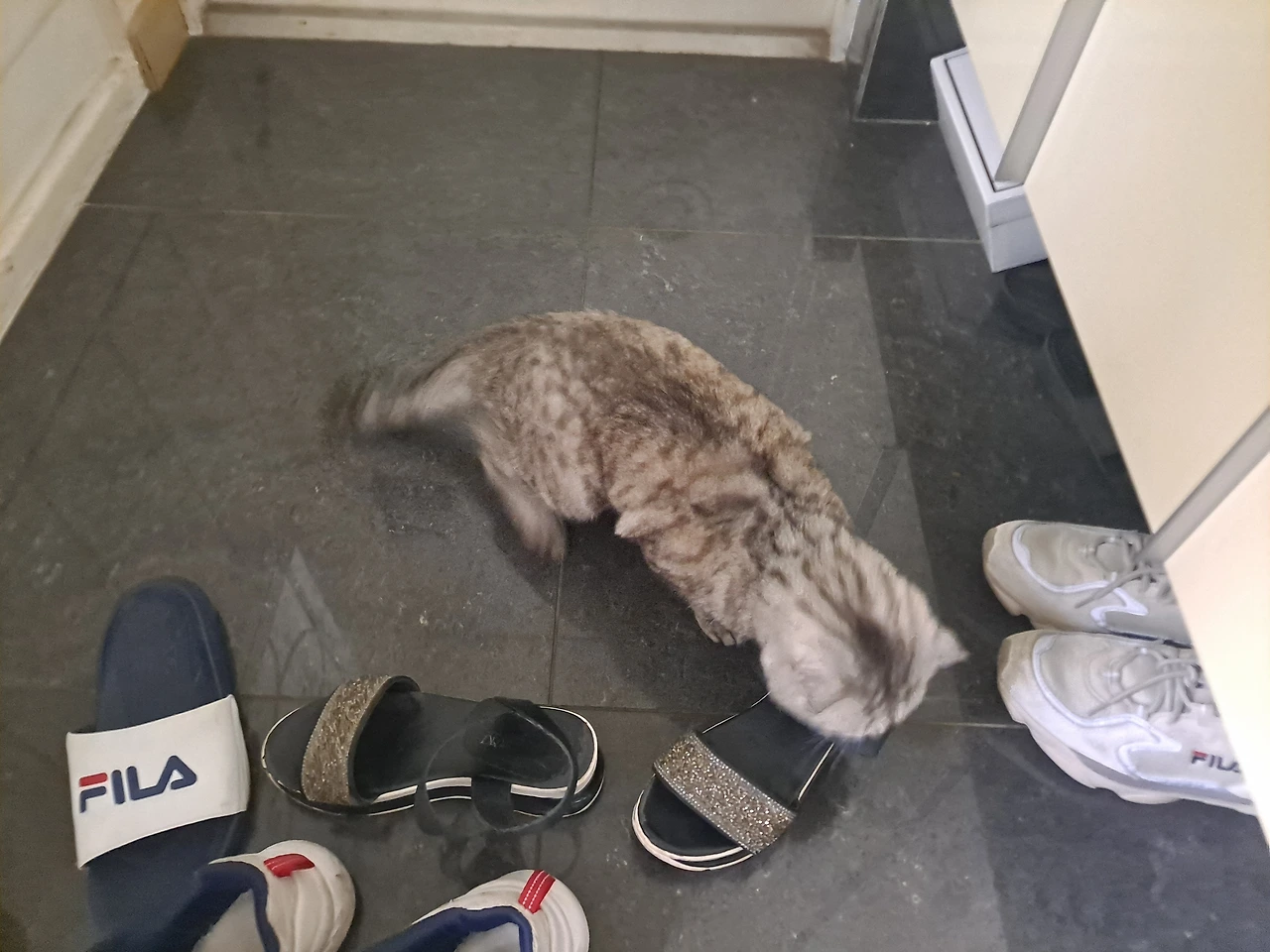 아이의 집에 가니 이 놈의 고양이가 어제 준 간식이 맛있었는지 몇 달만에 처음으로 아는 체를 한다. 주먹만한 머리를 마구 나에게 들이대며 부비적거리고 추근대었다. 슬프게도 어제 간식을 모두 줘서 남은 것이 한 톨도 없는데. 요 녀석의 머리에 내가 순순히, 한알 한알 간식을 내어 주는 기계로 아주 단단히 인식이 된것 같았다. 모든 애교를 담아서 드러눕고 내 다리, 팔 여러 곳에 몸을 문질러대었다. 심지어는 내 샌들 냄새까지 사랑하는 듯 킁킁 냄새를 맡는다. 취향이 독특한 고양이같으니. "그래도 간식이 없다. 너도 아이와 함께 강제 다이어트에 들어간 거다." 말이 안 통하니 눈빛마저 간절하게 레이저처럼 쏘아보는 고양이를 외면할 수 밖에 없었다. '왜 간식을 내놓지 않느냐?' 하고 가냘프게 야옹대면서 눈으로는 욕을 하고 있었다.