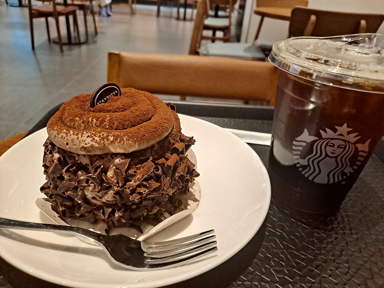 아침도 자알 챙겨먹고 왔으니 커피 한잔만 하는 것이 마땅하지만 이상스러운 보상심리가 발동하여 쵸코가 가득 발린 케익에 한참 눈독을 들였다. 이 케익을 보는 순간 모든 화가 오뉴월에 눈 녹듯 사라졌다. 그렇다면 당연히 먹어주어야하는 것이 인지상정이지. 아침부터 일어나서 달려오고 허탕을 친 기분에 스스로 작지만 칼로리는 무한정 높은 위로를 주어야 할 것이 아닌가?