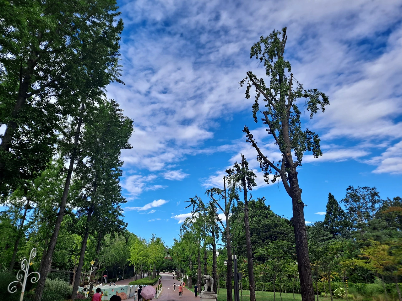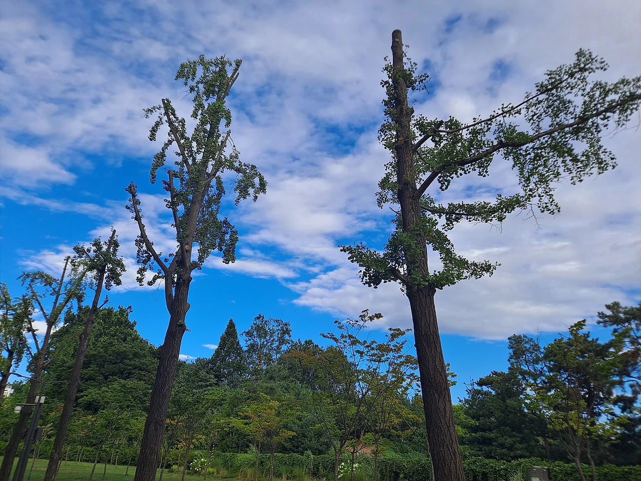발걸음도 가볍게 아침 산책을 나섰다. 간밤에 내린 비로 하늘이 더 말갛게 선명한 파랑색으로 씻겨있었다. 카메라 렌즈에 비치는 하늘빛은 실제보다 더 푸르다. 카메라는 인간보다 세상을 더 아름답게 보고 있는가? 그 렌즈를 통해서 인간도 세상을 더 긍적적으로 보라는 것일까?