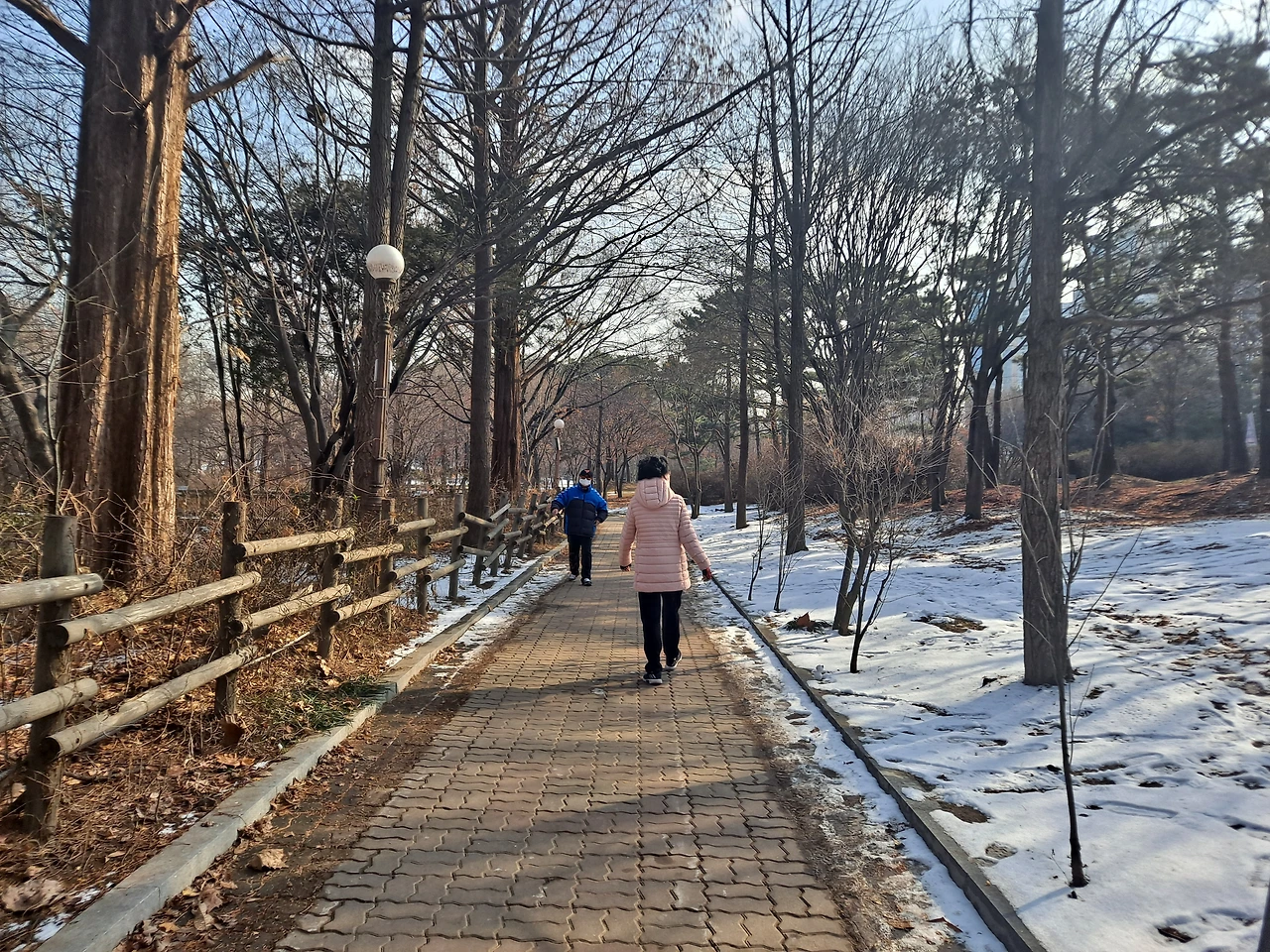 점심을 먹고는 근처 공원에서 한 시간 정도 산책을 한다. 오후가 되니 날씨가 한결 따뜻해져서 산책을 하고 햇볕이 내리쬐는 평상에 앉아 잠시 쉴 수도 있게 되었다. 어머니와 이런저런 대화를 두런두런 나누면서 겨울날에는 귀한 따스한 햇살을 만끽해 본다.