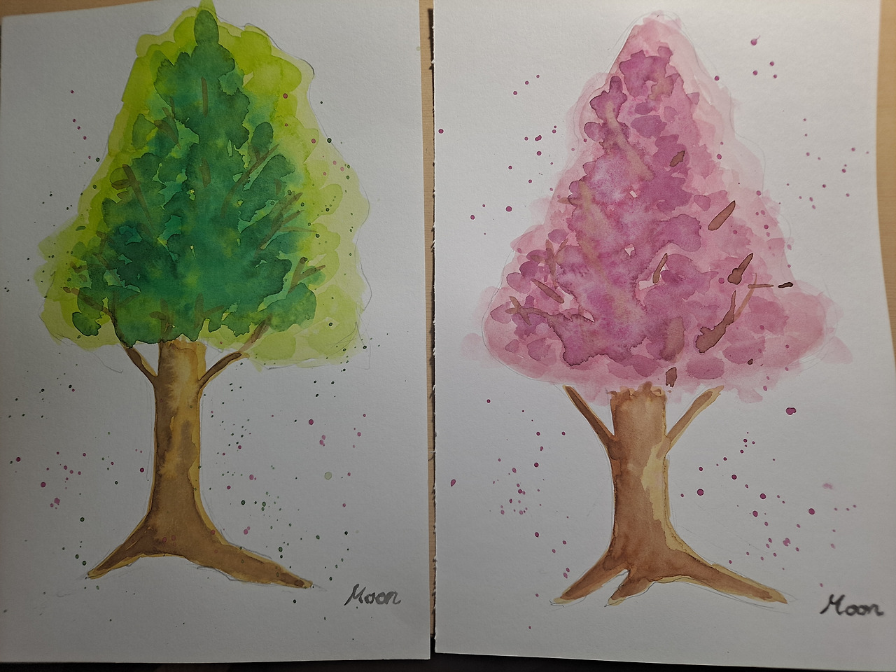 나무를 스케치하기 시작했다. 그림을 잘 못 그려서 다짜고짜 나무를 그리라고 하셔서 당황스러웠지만 선생님의 꼼꼼한 지도를 받으며 그림을 그려나갔다. '왜 나는 나무도 자아를 표현하여 뚱뚱하게 그리는가?' 몸통과 잎의 크기를 조절하고 옅은 색을 전체적으로 입히고 점점 진하게 2단계, 3단계로 색을 덧입혔다. 선생님의 마법의 손길로 그림은 점점 완성되어갔다. 절반은 선생님이 그리시는 듯.