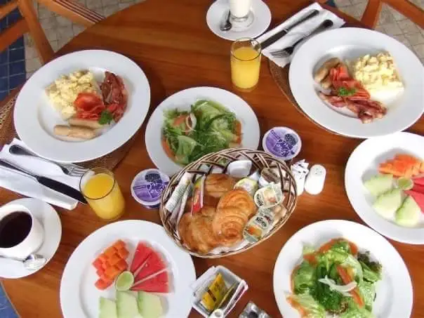 무엇보다도 좋았던 것은 아침 식사였는 데 잔디밭 옆에 테이블에 각종 음식을 풀 세팅해 주었다.