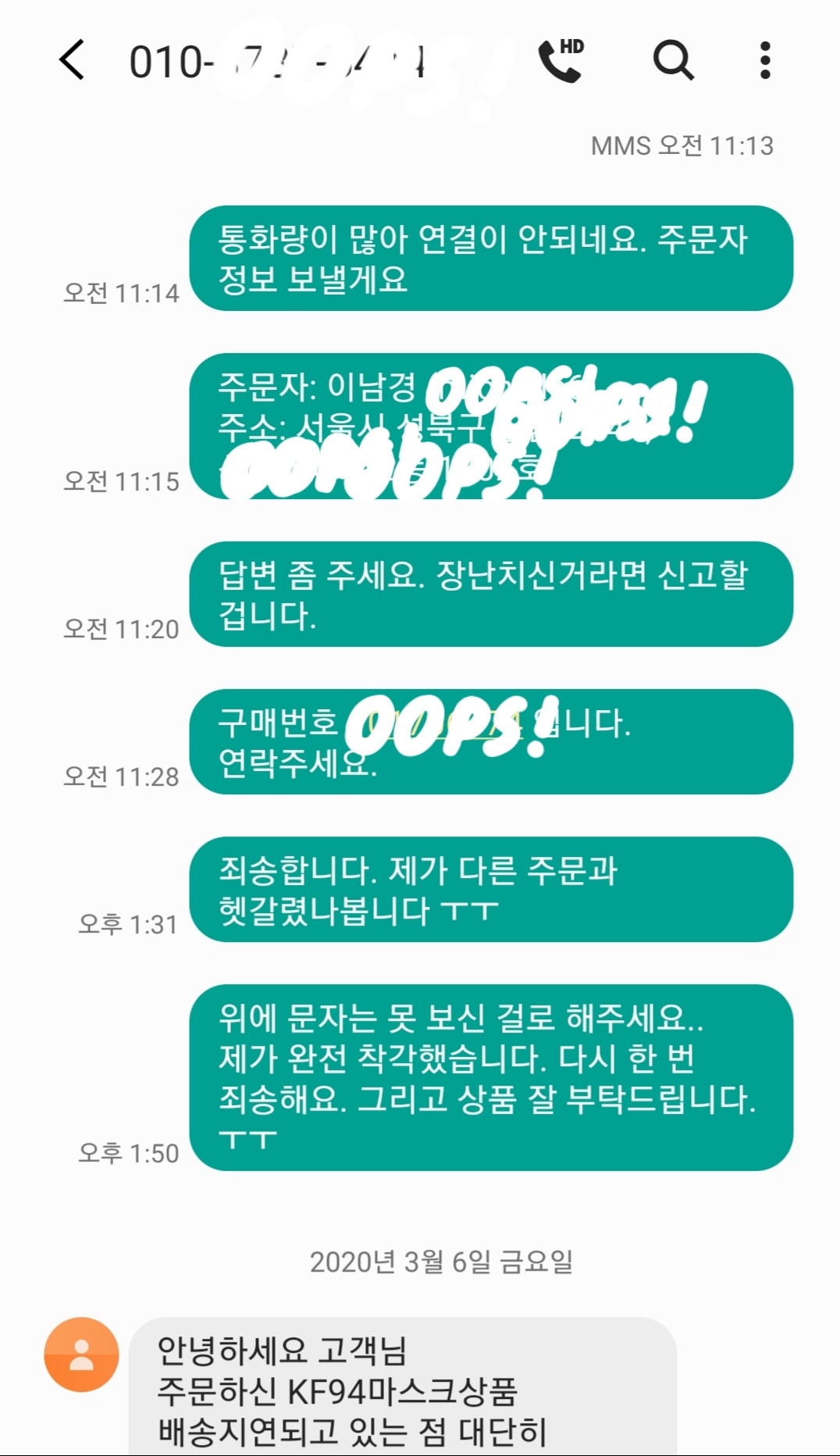 그런데, 갑자기 이 작가의 큰 눈이 더 커다래졌습니다. 뭔가 기억이 난 눈치였어요. 그리고는 핸드폰을 들여다보더니 어마한 실수를 한 듯 "어떡해"를 반복하지 뭐예요. 그리고 신고할 거라고 문자를 쓴 그분에게 다시 문자를 썼어요.
