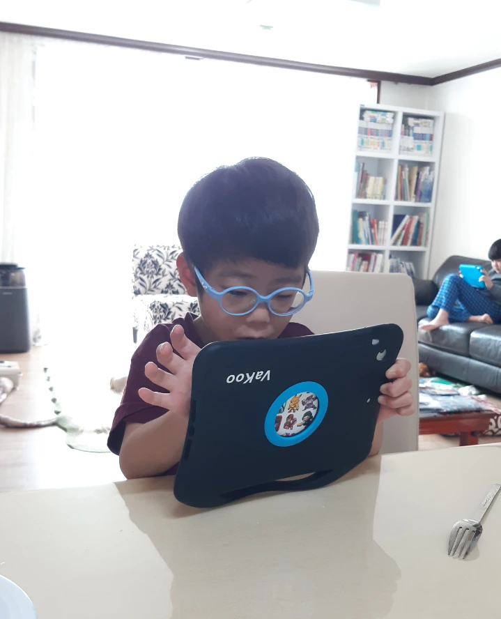 평화로운 아이패드 시간. 이 작가도 하루종일 주면 편할텐데.