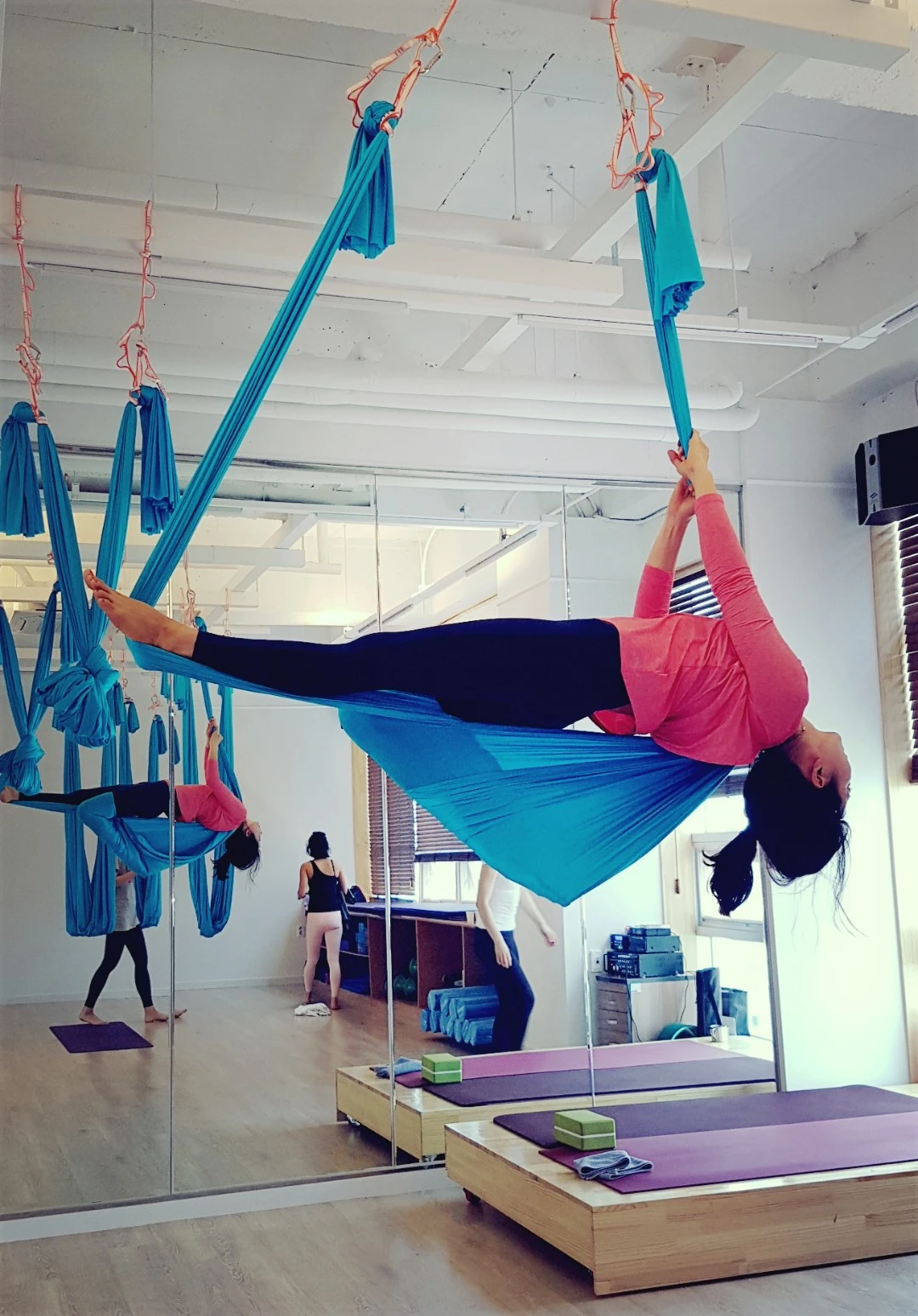 3년 전 한국에 잠시 체류할 때 플라잉 요가에 도전했다
