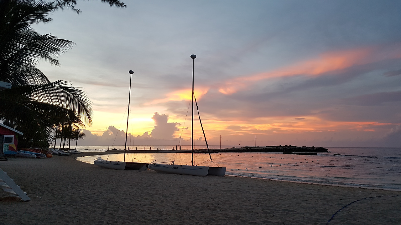 여행 첫날은 둘째 아이의 다섯 번째 생일이었는데 우린 선물같은 아기 돌고래 두마리를 만났고 카리브해 위를보트를 타고 신나게 달리며 생일 축하 노래를 목청껏 불렀다. 저 멀리 지는 태양이 야속했지만 우리는 아기 돌고래의 선물을 기억하며 붙잡고 싶은 여행 첫날을 마감했다.
