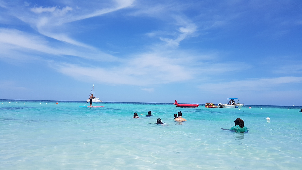 깨끗하고 아름다운 아쿠아 블루의 바닷물은 우리 몸을 따뜻하게 감쌌다. 하늘은 구름이 연하게 수 놓여 있었고 살랑 부는 바람은 상쾌했다. 우린 칵테일을 주문했다. 엄마는 어느덧 자메이카 예찬론자에, 흑인이 세상 가장 아름답다며 이곳의 열혈 팬이 되셨다.