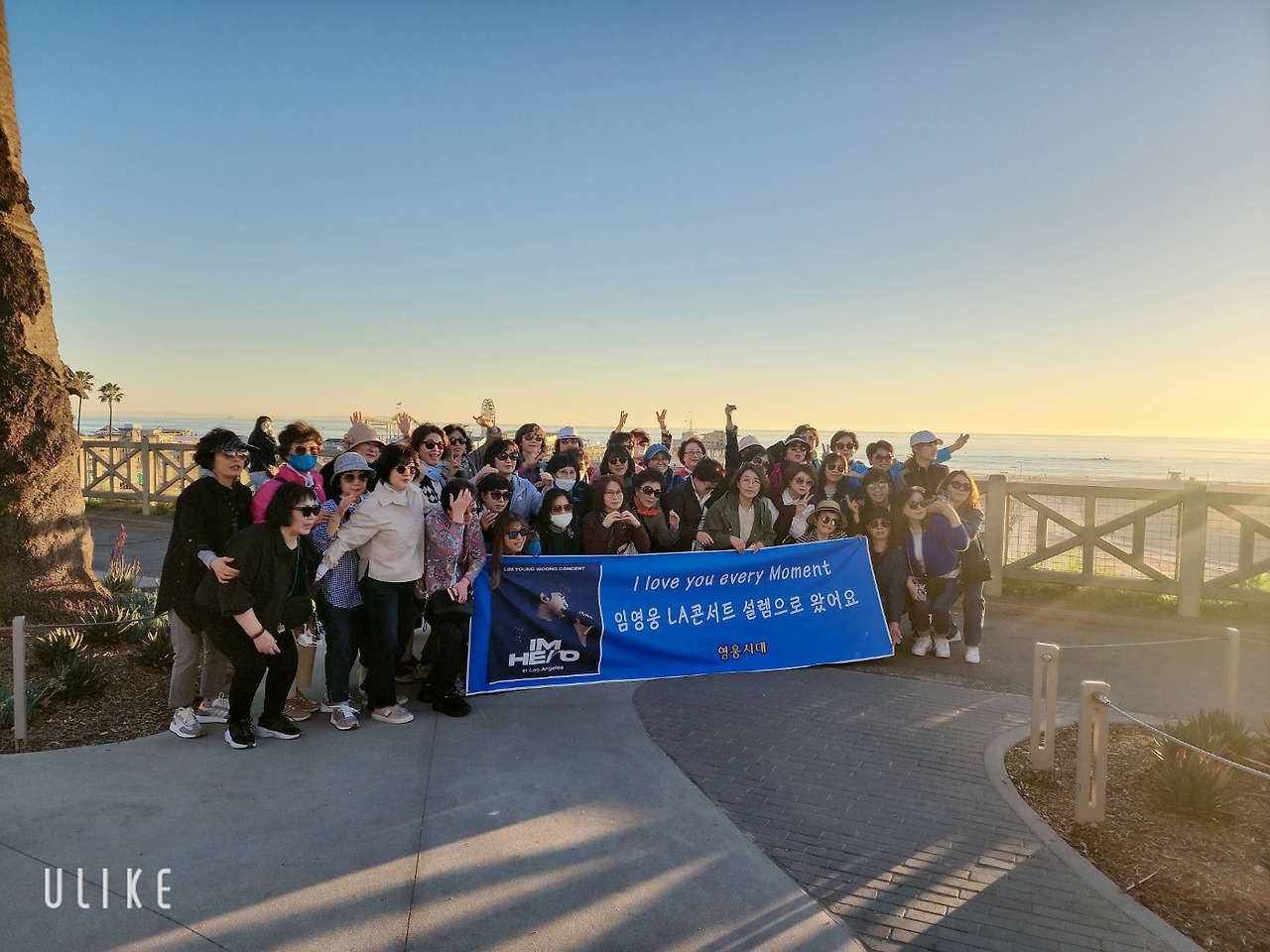 어스름해질 무렵, 버스는 산타모니카 해변에 우리를 내려놨다. 그곳은 베니스비치와는 또 다른 활기찬 에너지가 느껴지는 곳이었다. 바다야 말하면 뭐 할까. 빨리 저 바다로 가고 싶은데 우리에게 주어진 시간은 고작 40분. 그때, 어디선가 현수막이 나타났다. 으악.