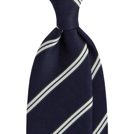 비즈니스를 위한 타이는 레지멘탈이 가장 적합합니다. 솔리드보다 포인트가 있으면서 화려한 글렌체크, 하운드 투스 패턴보다 부담이 덜합니다. 레지멘탈 패턴은 적당한 포인트 컬러감을 보여주면서 비즈니스에 적합하고 그 이상의 화려함을 절제해주는 아이템입니다.