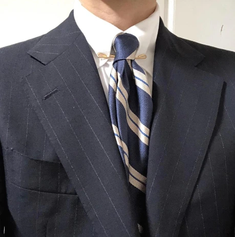 이와 반대로 스트라이프 선이 얇은 것은 진중하면서 포인트만 준 디테일이기 때문에 안정적이면서 포멀한 비즈니스 스타일을 만들기에 적합합니다. 가장 많이 찾는 스타일이기도 한 얇은 선의 레지멘탈 타이는 실패없는 면접 스타일링의 기본이면서 어떤 미팅 자리에서도 튀지 않게 본인을 포멀하게 만들어줍니다. 다만 재미가 없는 스타일 일수도 있다는 것을 기억해야 합니다.