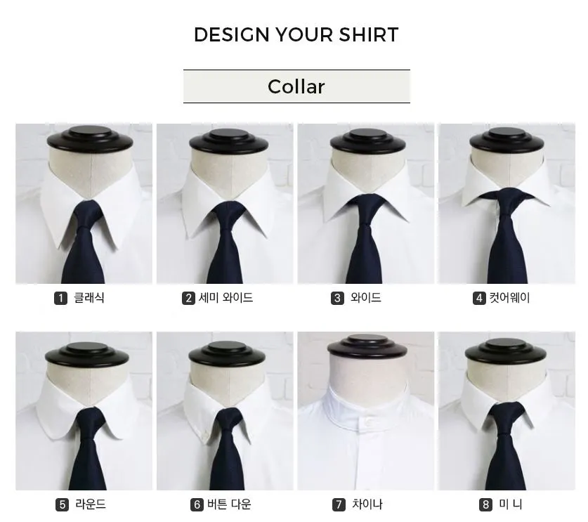 온라인 웹페이지를 방문하면 다양한 컬러, 패턴, 스타일의 셔츠가 있습니다. 이 중 마음에 드는 스타일 혹은 컬러를 선택한 다음 디테일을 선택할 수 있습니다. 셔츠 카라의 디자인, 소매 디자인, 주머니 유무 등등 나만을 위한 셔츠를 맞춤으로 진행하는데 10만원 언더의 가격으로 가능합니다.