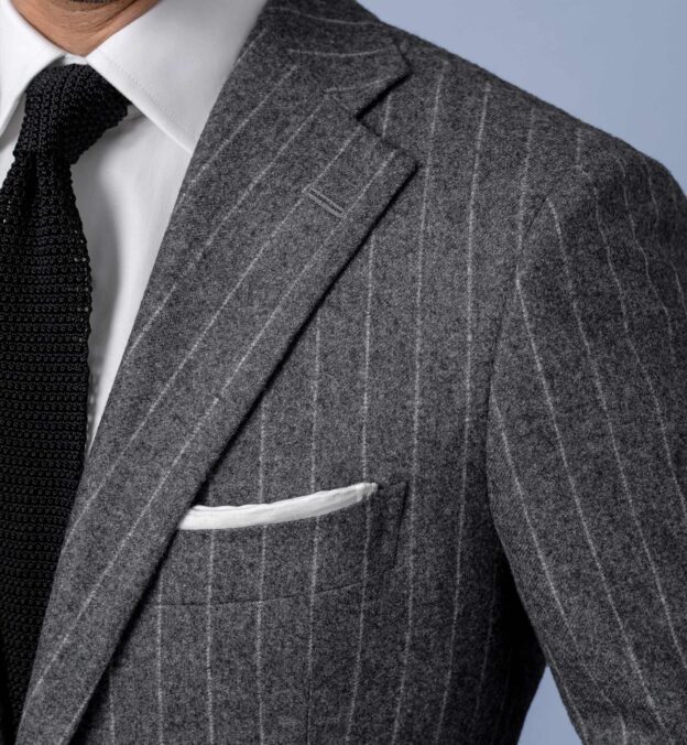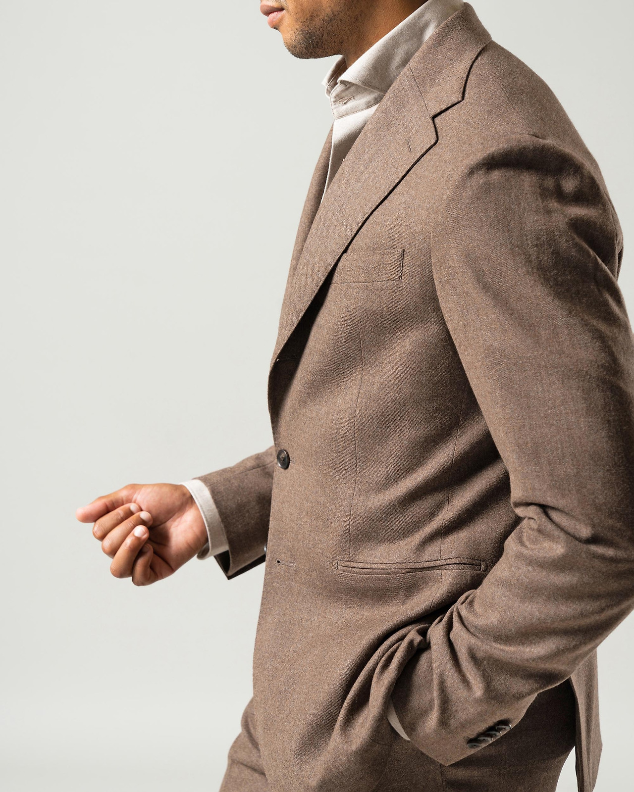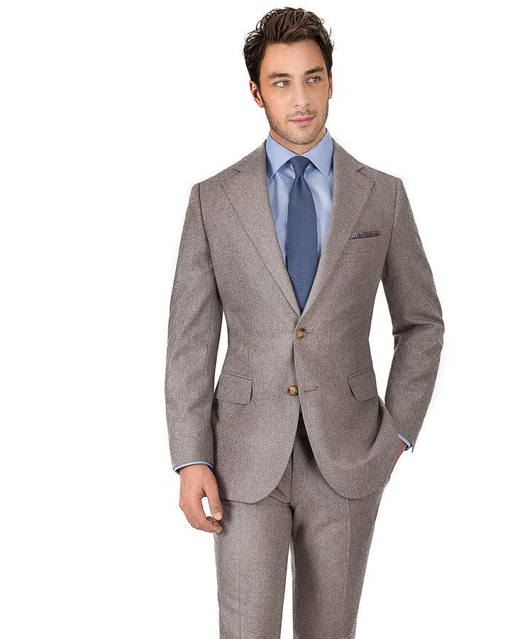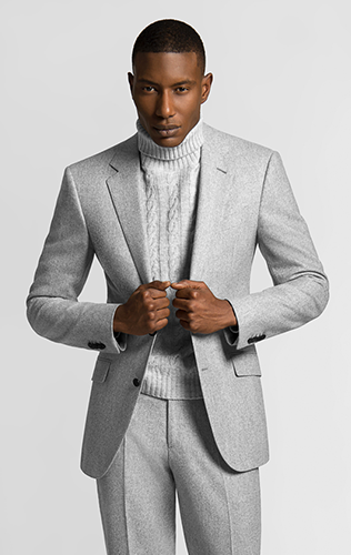 겨울이 되면 중량이 다소 무거운 소재의 슈트를 입게 됩니다. 플란넬처럼 겉면에 기모가 올라오는 소재나 단단하게 두꺼운 홈스펀 같은 것 말입니다. 이 소재들은 겨울에 가장 잘 어울리는 따뜻한 외관을 보여주면서 실제로도 보온성이 높습니다. 봄 여름 가을에는 즐기기 어려운, 오로지 겨울을 위한 소재입니다. 특히 플란넬 소재의 특징은 컬러가 밝을수록 재미있는 요소가 더 잘 드러난다는 점입니다. 그렇기에 어두운 컬러를 한 벌 정도 구매했다면 다음 밝은 컬러의 겨울 슈트를 추천합니다. 아니, 시작부터 밝은 컬러를 선택해도 좋습니다. 장점이 더 많기 때문이죠. 우선 솔리드 슈트부터 이야기해보도록 하겠습니다.
