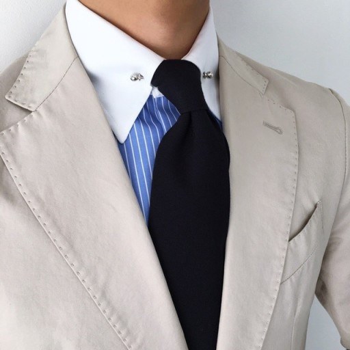 가장 추천하는 조합은 스트라이프 혹은 솔리드 패턴의 클레릭 셔츠와 솔리드 슈트와의 매칭입니다. 멋이라는 것을 내기에 지나침이 없어보이는 가장 높은 단계라 볼 수 있습니다. 이 조합을 거듭 경험하면서 화려한 패턴의 클레릭 셔츠, 그리고 패턴 슈트와의 조합을 점차 경험해보는 것이 좋겠습니다.