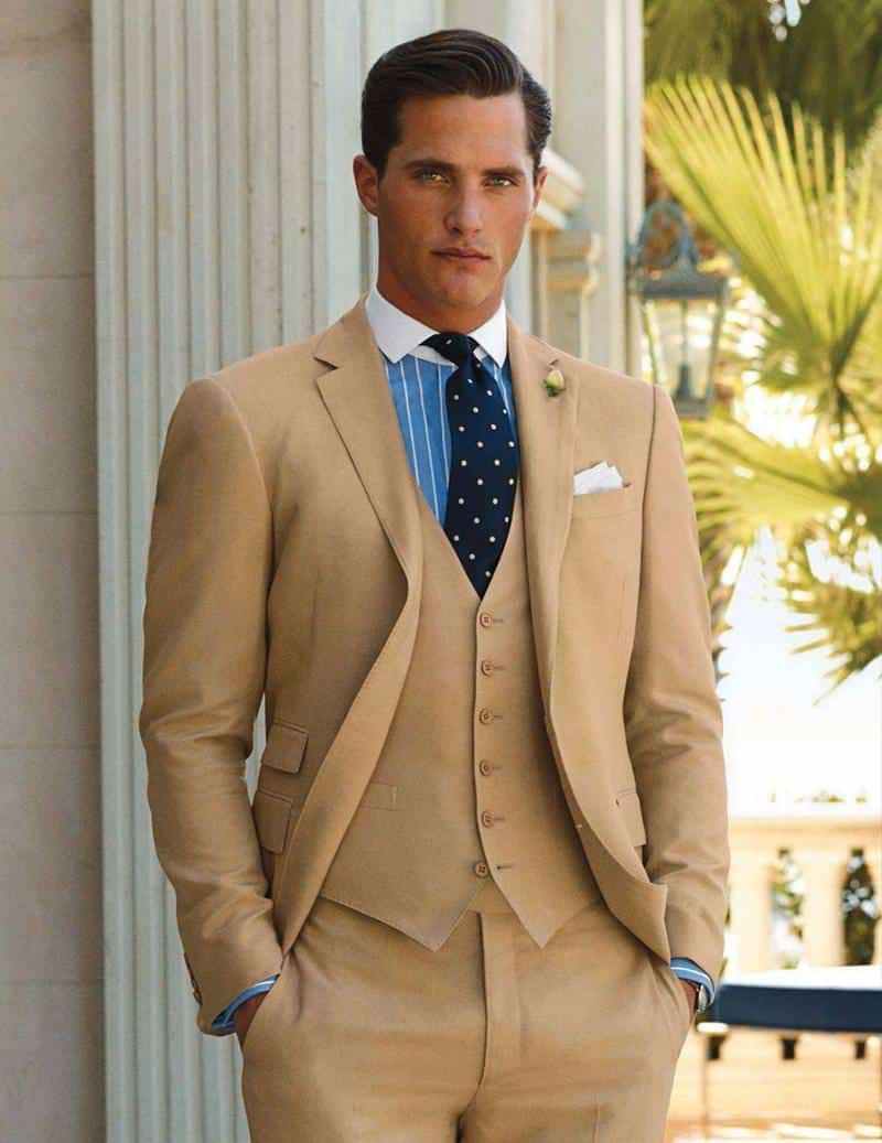 이유로는 첫 번째, 울 소재와 다른 면 소재 특유의 단단한 특성이 같은 치수여도 더 작거나 크게 느껴질 수 있기 때문입니다. 두 번째로는 소재의 터치가 다양하기 때문입니다. 울 소재도 마찬가지지만 특히 면 소재는 보이는 것과 다르게 두껍거나 얇을 수 있고 부드러운 터치처럼 보여도 생각보다 러프한 터치감을 느낄 수도 있습니다. 그렇기에 꼭 만져보고 구매하는 것이 좋겠습니다. 마지막으로는 생각보다 코튼 슈트가 온라인 몰에 다양하게 올라오지 않습니다. 오프라인 구매층이 강하고 정기적으로 코튼 슈트를 다루는 브랜드는 정해져 있기 때문에 특정 브랜드와 오프라인 매장을 두루 둘러보는 것이 좋겠습니다. 코튼 슈트를 항상 다루는 브랜드로는 '폴로(POLO)'가 있습니다. 아메리칸 클래식의 대명사답게 면 소재의 슈트는 항상 나오는데 베이지, 네이비부터 카키, 브라운 정도까지 시즌에 따라 다양하게 출시가 되는 편입니다.