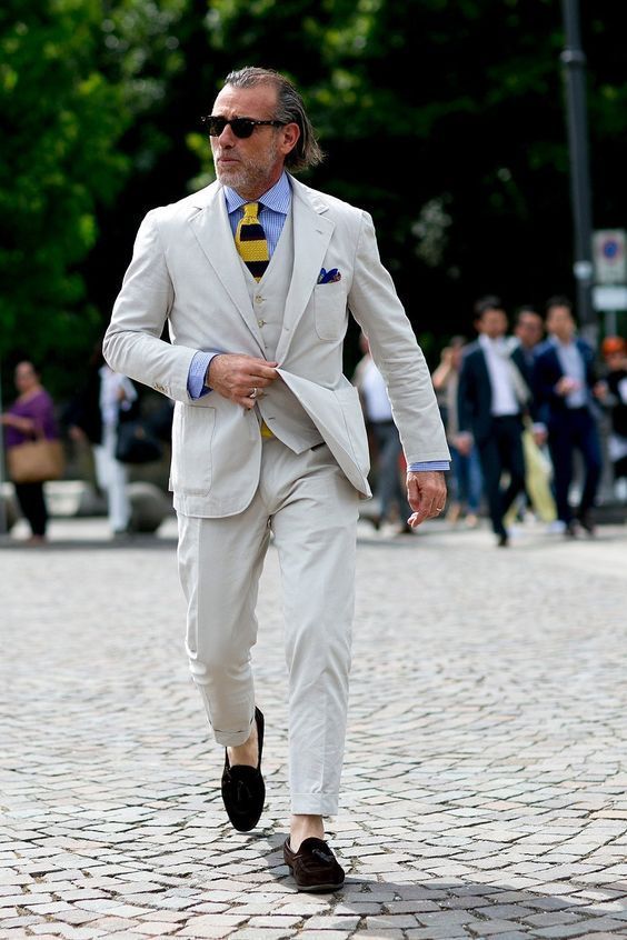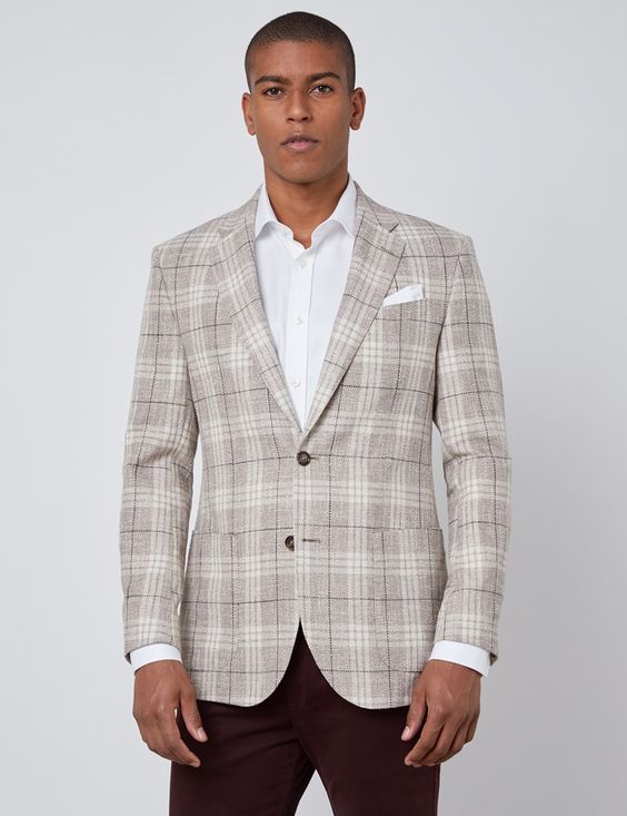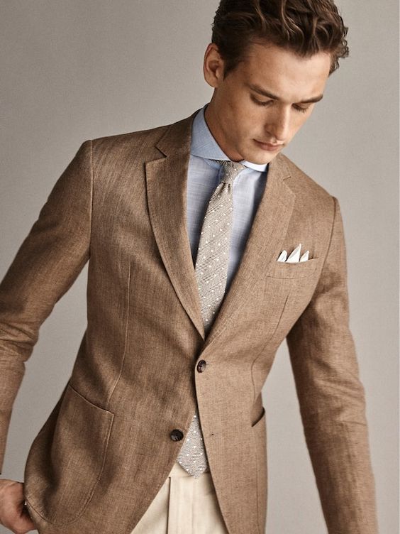 밝은 컬러는 블루 계열이나 브라운 계열 팬츠와 우아한 조합을 보여줍니다. 컬러는 아이보리에서 베이지 정도가 좋습니다. 라이트 그레이, 라이트 블루의 경우 컬러가 단품 재킷보다는 한 벌로 된 슈트가 잘 어울립니다. 각기 다른 컬러와의 조합이 쉽지 않기 때문입니다.