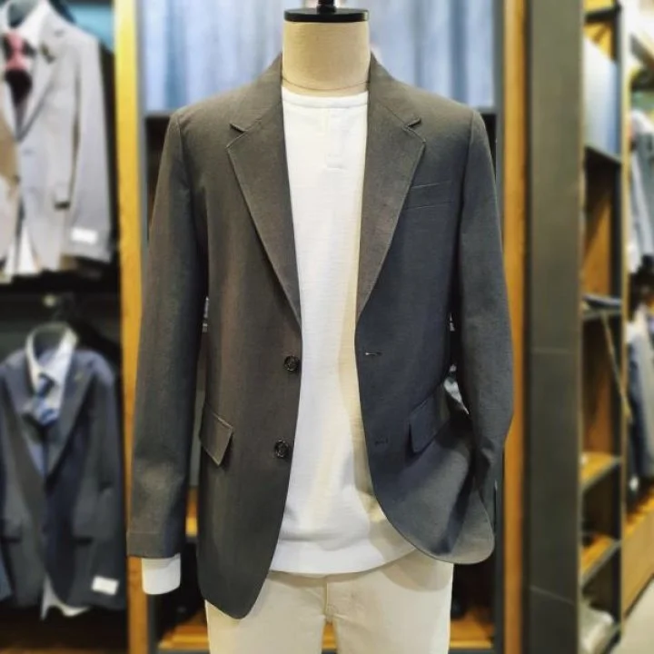 한 여름에 입는 재킷을 고르는 기준은 2가지입니다. 얼마나 통기성이 있고 청량한 소재인지, 단품 재킷 즉 블레이저로써 여러 팬츠와 이너 아이템과 잘 어울릴 수 있는지입니다. 슈트 재킷이 아닌 단품 재킷이기 때문에 어느 정도 캐주얼의 요소를 가지고 있어야 합니다. 타이까지 할 생각이라면 차라리 여름 성 소재의 슈트가 있기에 이는 논외로 두겠습니다.