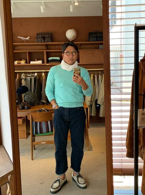 특히 그의 레이어링이 어렵지 않고 멋져 보이는 것은 아이템의 디자인이 어렵지는 않다는 점입니다. 컬러의 조합을 즐기는 그의 스타일에서 디자인으로써 어려운 것은 없습니다. 기본에 충실한 디자인의 아이템을 조합함으로써 투머치해 보일 수 있는 레이어링을 영민하게 풀어낸 모습에서 우린 오묘한 간극의 미를 배울 수 있습니다.