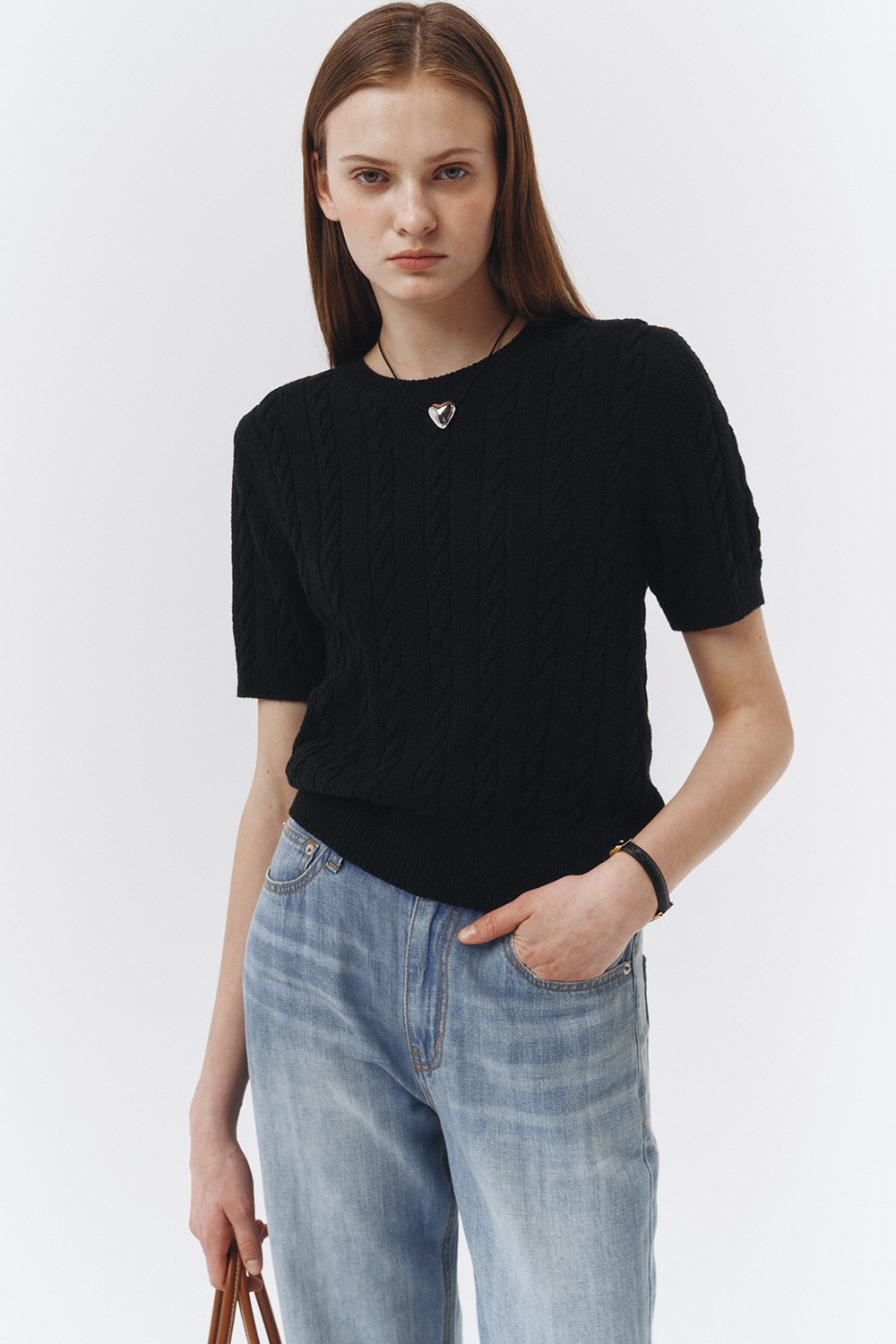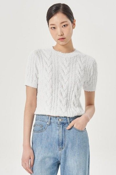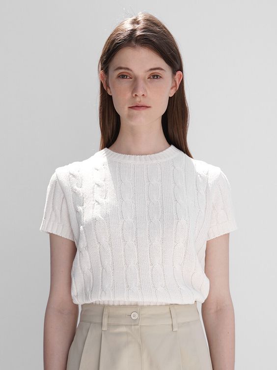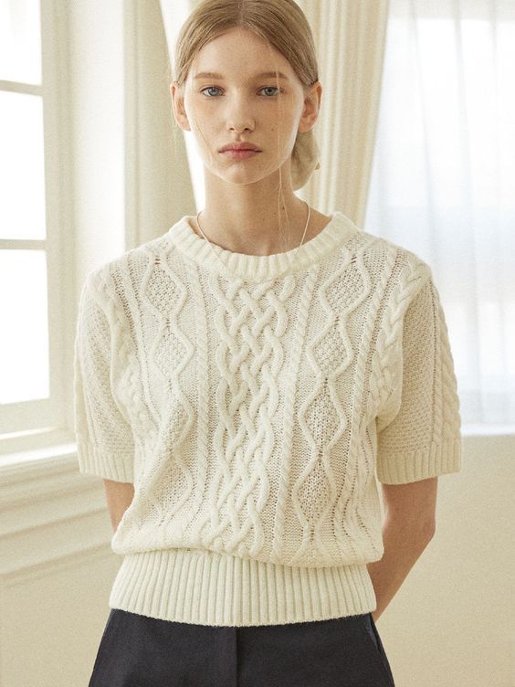 그런 일종의 고정관념은 몇 해 전부터 다양한 여성 브랜드를 통해 변화되기 시작했습니다. 얇게 편직이 가능해진 기술로 케이블 조직을 얇게 만들어 밋밋해 보일 수 있는 니트에 재미를 주었습니다. 덕분에 여름 반팔 니트에 케이블 조직이 들어간 아이템을 하나 입으면 솔리드 조직보다 훨씬 포인트가 되기 좋습니다.