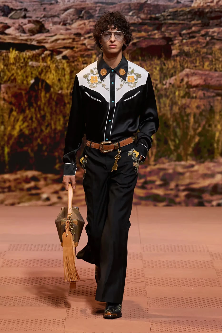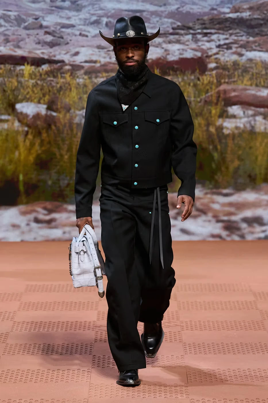 카우보이 웨스턴 컬처를 표현한 컬렉션으로 럭셔리를 웨스턴에 어떻게 풀어낼지를 매우 힙하게 풀어낸 컬렉션이었다. 그 와중에는 퍼렐의 근본인 힙합, 스트릿도 녹아있었다. 섞이기 어려울 것 같은 조합이 이리 표현되니 캐주얼하면서도 독특하고 고급스럽다. 오래간만에 보는 즐거운 컬렉션이다.