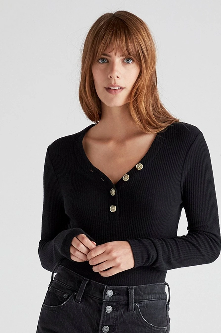 헨리넥 티셔츠는 넥 부분 중앙에 단추가 달린 스타일로 단추를 풀었을 때 더 여유로운 느낌을 연출할 수 있습니다. 또한 단추를 풀었을 때 넥 부분의 답답함이 없기에, 여유로운 착용을 원하는 분들에게 적합합니다. 연출면에서나 착용면에서나 높은 만족도의 아이템입니다. 우리가 이 아이템을 자주 입지 않았던 것은 익숙하지 않아서였을 겁니다.