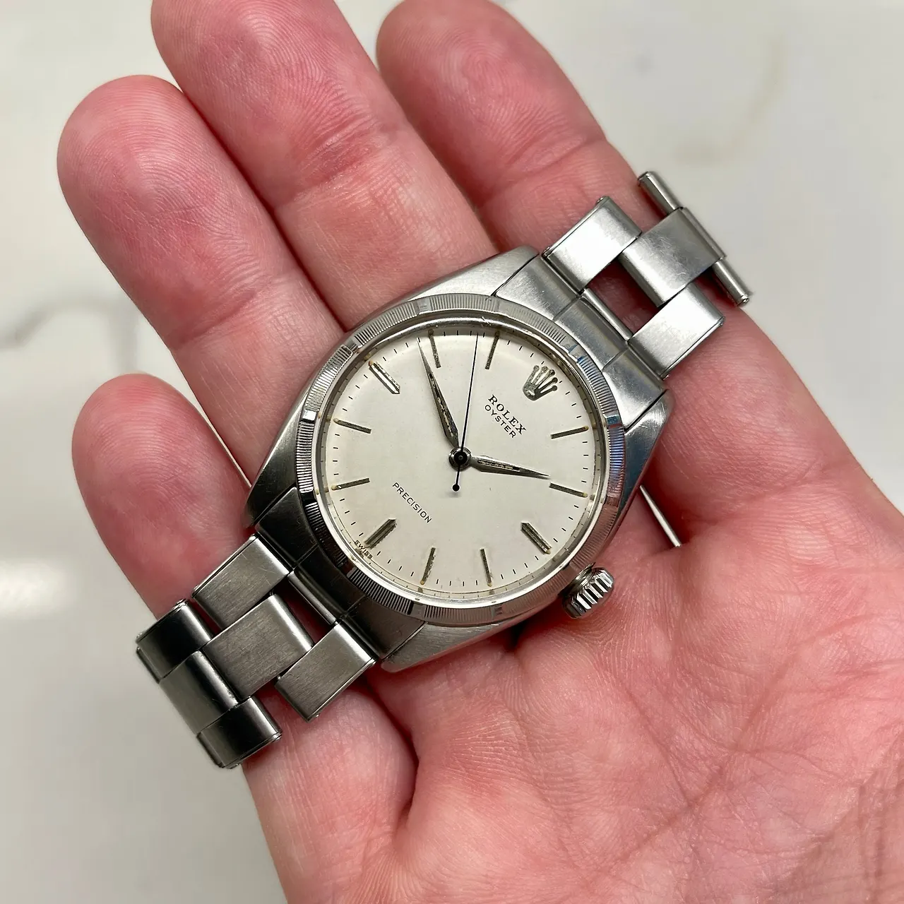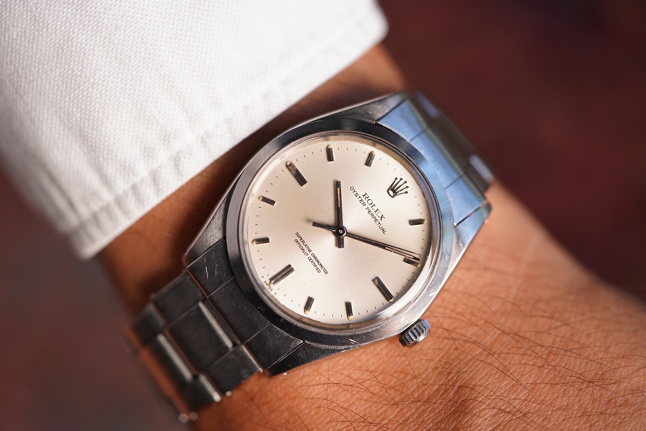 빈티지 롤렉스, 그중에서도 '오이스터' 모델은 간결하면서 명확한 디자인이 매력적인 라인입니다. 크기는 보통 34~36mm 정도이며 간결한 다이얼 디자인을 가졌습니다. 아이보리와 크림색 바탕의 다이얼이 특히 매력적입니다. 이 매력적인 아이템은 특히 1960년대부터 1980년대 모델에 많은 편이며, 빈티지 시장에 다양하게 보입니다.
