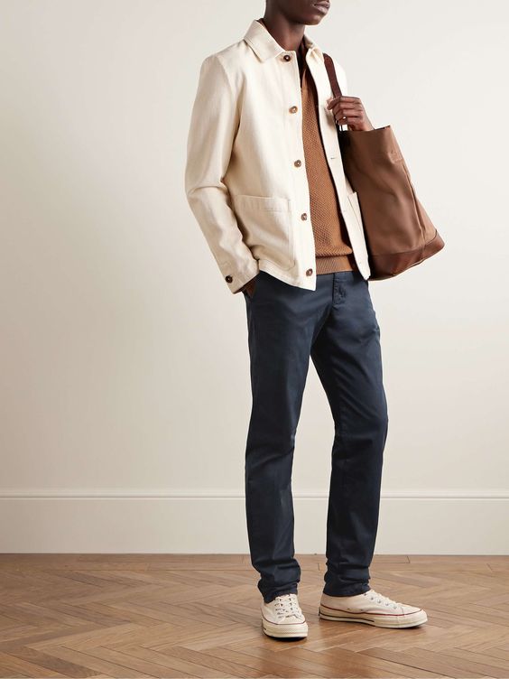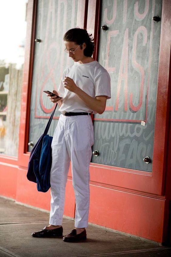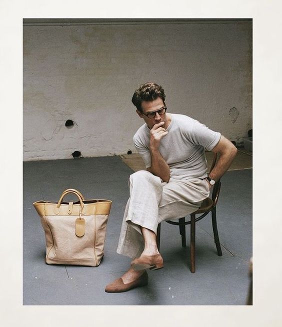 밝은 컬러의 스타일링에는 팬츠가 화사한 것을 선택하는 것이 좋습니다. 팬츠가 화사하면 다른 아이템들은 자연스럽게 연결이 되니까요. 그런데 이런 화창한 봄날에 입는 화사한 팬츠는 울 트라우저가 아닌 살짝 여유로운 치노 팬츠가 더 어울립니다. 여유로운 무드가 훨씬 잘 맞으니까요.
