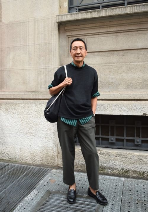 카모시타상이 단순히 슈트만 잘 입는다면 이 정도로 유명해지지 않았을 겁니다. 그가 보여주는 캐주얼 스타일은 명확하면서 부드럽고 우아합니다. 여름이면 하프 니트에 여유로운 핏에 깡충한 기장 팬츠, 짧게 두른 스카프까지 모든 것이 치밀한 멋이 느껴집니다. 특히 라운드 하프 니트는 국내에서는 남성복에서 출시된 지 얼마 안 된 아이템입니다. 이미 오래전부터 이런 아이템을 가지고 스타일링을 할 정도로 안목이 카모시타를 지금의 전 세계적인 인물로 만들었습니다.