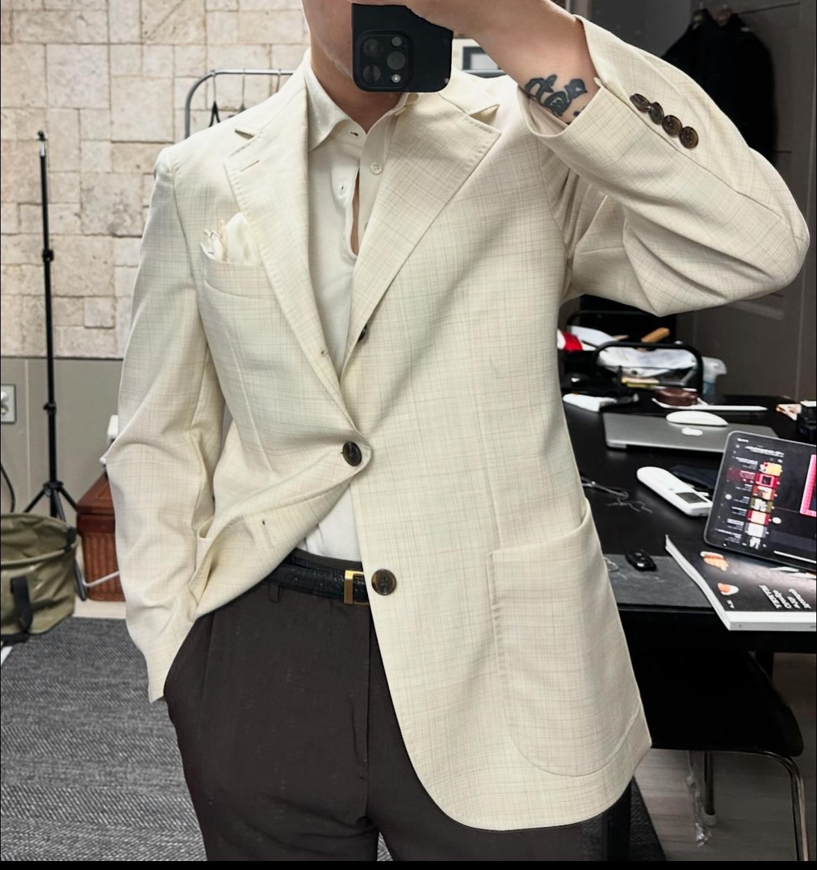 그리하여 예전부터 가진 팬츠부터 최근에 구매한 팬츠까지 3가지의 컬러별 브라운 팬츠를 자주 입습니다. 하루는 화이트 코튼 셔츠를 과감하게 풀어서 입고, 어떤 날은 화이트 테리 카라 티셔츠와 어떤 날은 블루 리넨 셔츠와 함께 합니다. 밝은 컬러의 이너와 함께 입으면 늘 성공적입니다. 울, 리넨 소재의 브라운 팬츠가 가진 발색과 텍스쳐의 매력은 여름 햇살에 가장 아름답게 비칩니다. 그렇기에 브라운 팬츠 하나만 입어도 충분히 멋진 스타일이 완성됩니다.