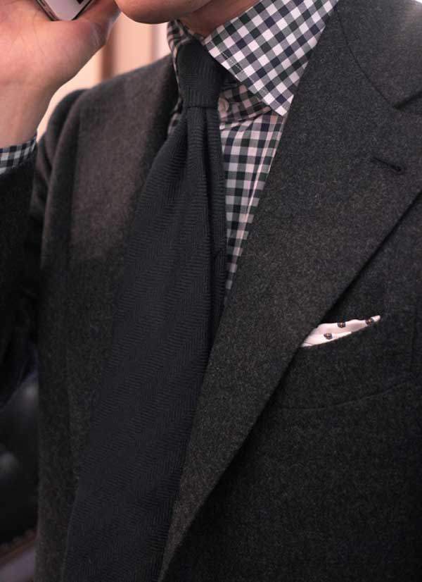 우선 상복의 느낌이 고민이라면 타이와 셔츠에서 스타일링을 톤 매칭을 해주면 된다. 타이는 블랙의 니트 타이 혹은 도트 패턴의 블랙 실크 타이를 해주면 세련미가 더 깊어진다. 셔츠는 화이트 컬러가 가장 좋지만 블랙 깅엄 체크나 블랙 스트라이프 셔츠와 매칭 해준다면 한국에선 잘 볼 수 없는 재미있는 조합을 만들 수 있다. 다만 블랙 셔츠와의 매칭은 추천하지 않겠다. 그 조합, 생각보다 멋지지 않다. 게다가 블랙 셔츠는 화이트보다 먼지가 묻거나 때가 묻으면 더 티가 난다.