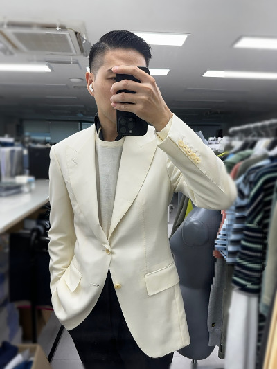 아이보리 컬러 재킷을 입을 때 아이보리 컬러 니트를 매칭하는 스타일링을 좋아합니다. 화이트 셔츠는 아이보리 컬러 재킷과 함께 했을 때, 산뜻한 컬러 조합이 우아하고 매력적이지만 과한 드레시함이 있죠. 꼭 결혼식식 가는 신랑 같기도 합니다. 대신 비슷한 컬러 톤의 니트를 입으면 캐주얼한 고급스러움을 표현할 수 있습니다. 그래서 좋아하는 조합입니다. 하지만 목이 허전한 것은 여지없이 느껴집니다. 무언가 필요할 때 찾아 둘러맵니다. 실크 스카프를요. 정확히는 쁘띠 실크 스카프입니다.