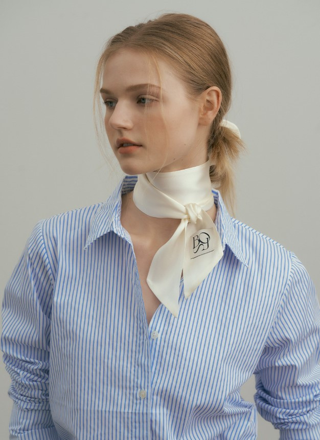 다만 실크 재킷이나 실크 셔츠와 같이 입을 때는 소재가 비슷해 포인트 요소가 아닌 하나의 연결된 느낌으로 연출이 가능합니다. 그래서 목이나 앞부분을 어느 정도 보이게 쁘띠 스카프를 목에 둘러매는 것이 매력적인 연출법입니다. 아니면 '오간자' 소재로 된 쁘띠 스카프도 좋습니다. 불투명한 컬러톤, 거친 텍스쳐는 실크 스카프와는 또 다른 담담한 매력이 있습니다.