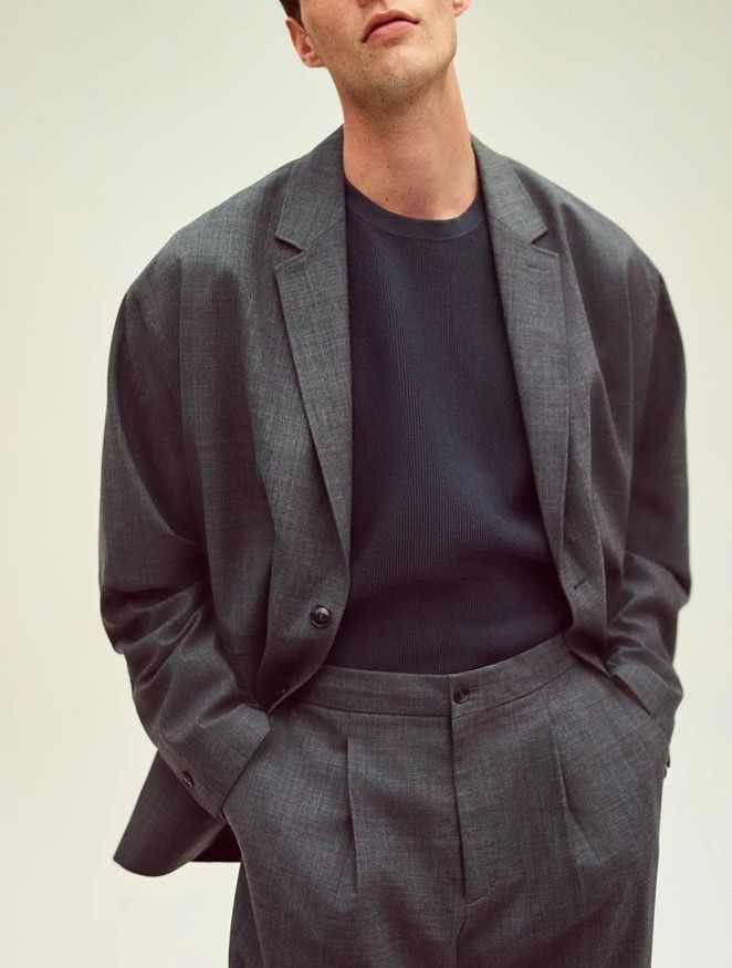 오버 사이즈 핏이 다양한 주류 중 하나가 되면서 다양한 아이템에 적용되었습니다. 티셔츠를 넘어 니트, 셔츠, 팬츠, 코트 등 캐주얼하게 입는 아이템에 모두 적용되어 다양하게 출시되어 많은 사람들이 입고 있습니다. 그러다 어느 순간 '오버 사이즈 슈트'가 출시되었습니다. 착용자의 어깨와 재킷의 어깨가 어느 정도 맞는지, 길이와 균형은 어떤지, 팬츠의 길이는 어디에서 브레이크를 걸 것인지 그 하나하나에 섬세하게 고민하는 슈트라는 아이템에 '오버 사이즈'라는 개념이 들어오게 된 것입니다.